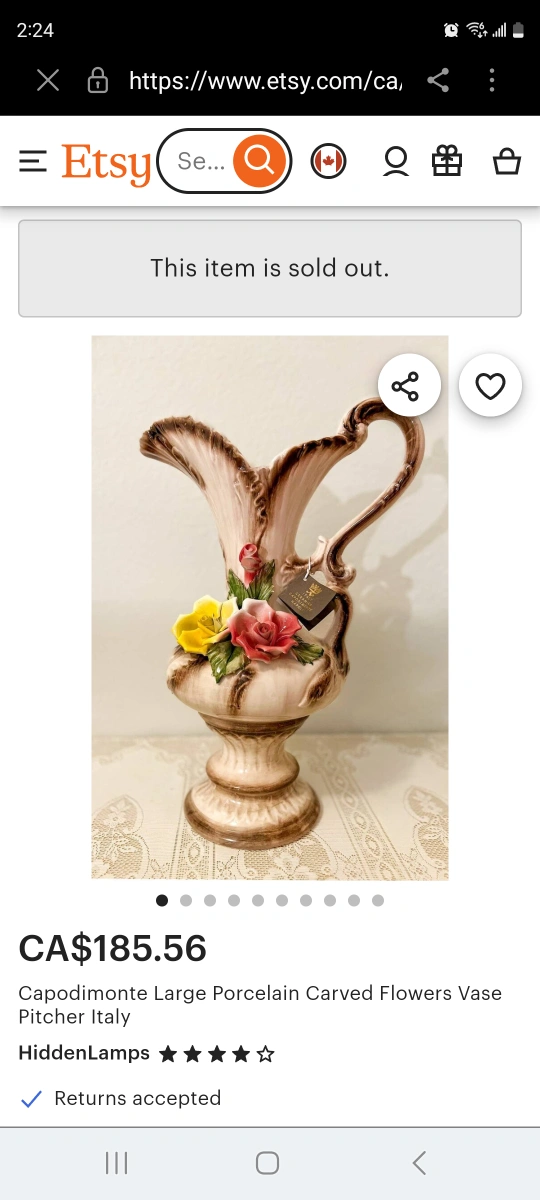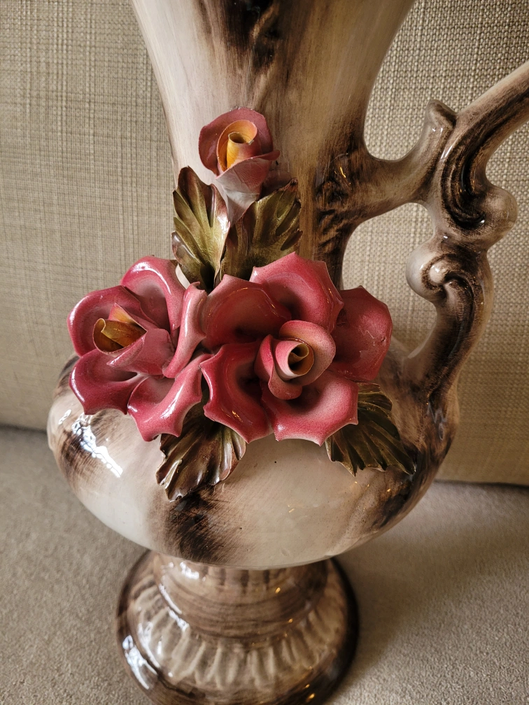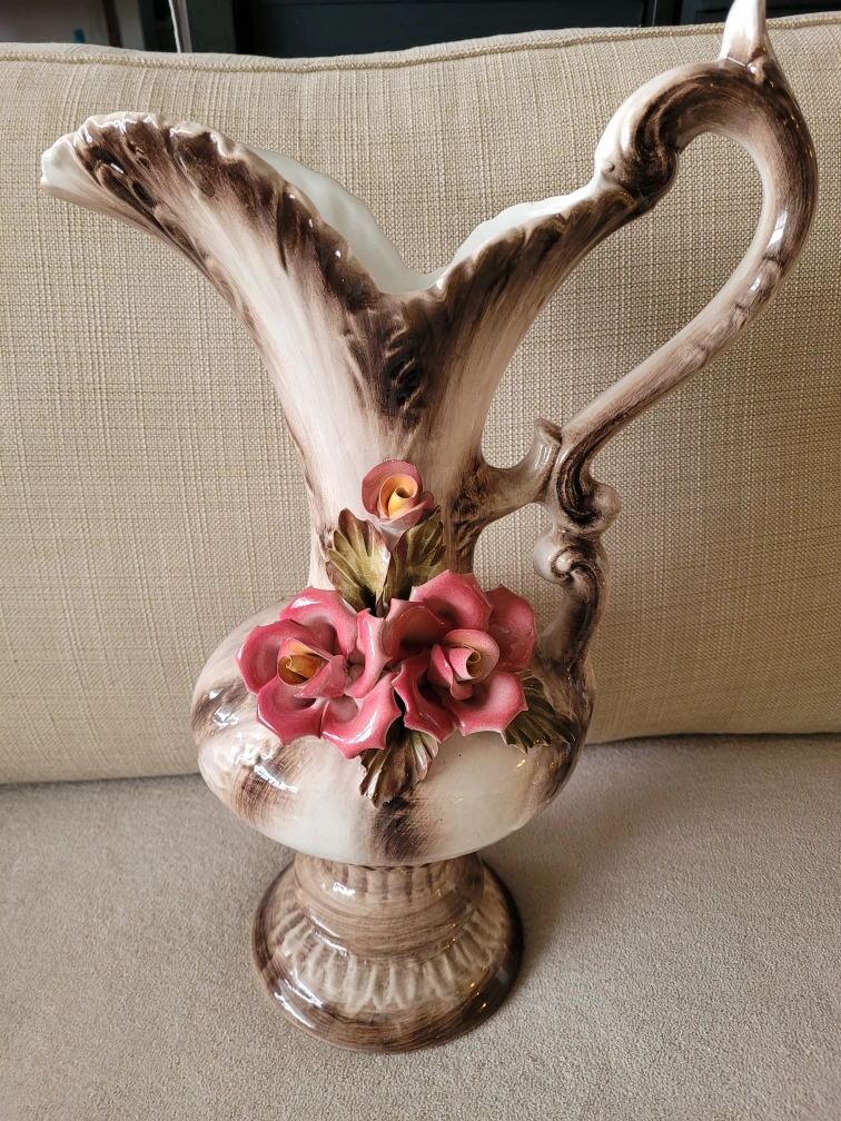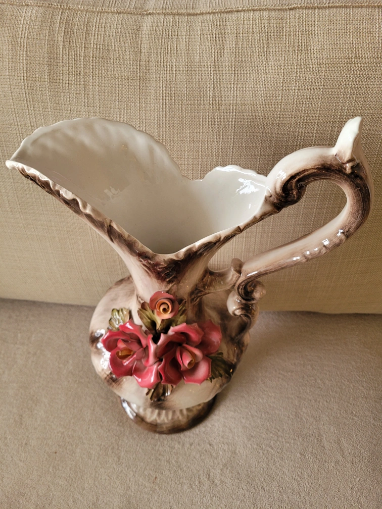 Pitcher Vase Italy 18 1/2" Tall Ornate Roses