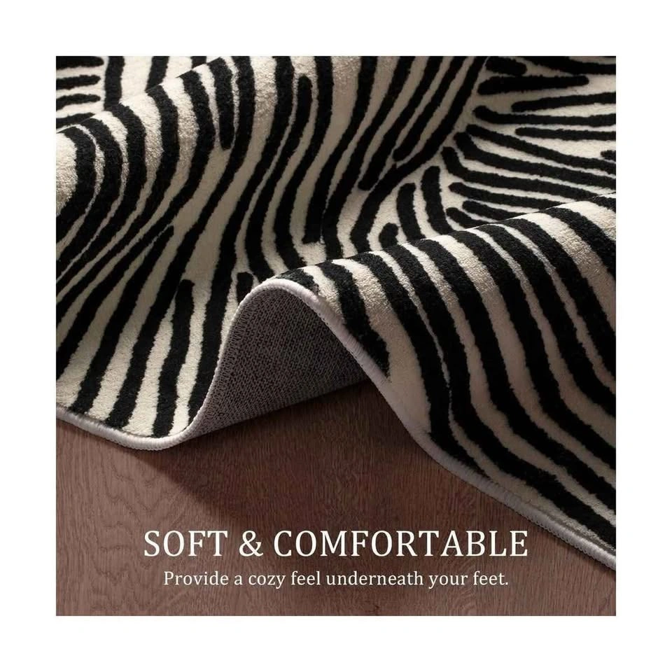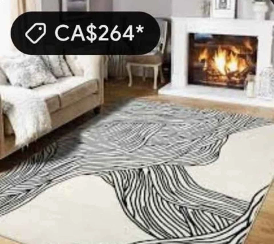 30Abstract Washable Rug — 5x7 Couture for your floors. This is not just a rug — it’s a statement piece. Black and ivory lines cut across a velvet-smooth base with the authority of a designer brushstroke. Bold, linear, and unapologetically modern, it sets the tone for a room that doesn’t whisper style — it declares it. Function is no compromise: machine washable, stain-resistant, with non-slip backing and reinforced edges. Luxury that doesn’t just live in a magazine spread — it lives in your home. Why you need this: Because ordinary rugs blend in. This one takes center stage. It transforms space with an editorial edge, the kind of quiet luxury you’d expect from the pages of Vogue. Serious buyers only. By appointment pickup.