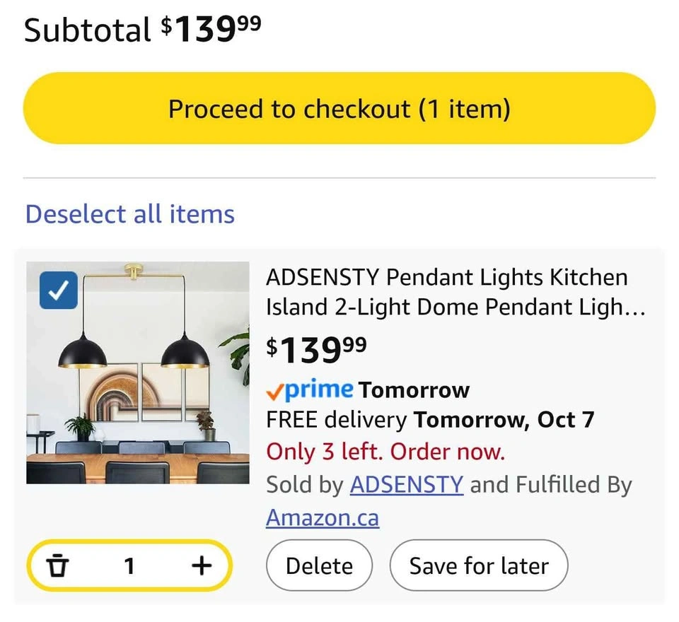 30Hi, welcome! You just found LUNEA β excellent deals and aesthetic finds in Winnipeg. Follow us on Marketplace, TikTok, and Instagram @luneawinnipeg for new arrivals and the best prices. π€ 2-Light Dome Pendant Light Fixture π€ chandalier Bulbs not included Modern black and gold pendant lighting that instantly upgrades your space. Perfect for kitchens, dining rooms, cafes, or even a chic home office. β Premium black metal with a gold interior finish β Adjustable cord up to 47 inches β Size: 34.6" L x 11.8" W x 56" H β Compatible with E26 bulbs β LED, CFL, or halogen β All mounting hardware included for easy installation β¨ Why pay retail? This same fixture runs about $300 plus tax online. With us, you get the same look, the same quality, and the same designer vibe β for less. My opinion: this light isnβt just functional, itβs a statement piece that makes your space feel elevated and aesthetic the moment itβs hung. β Available by appointment only Follow LUNEA on Facebook Marketplace, TikTok, and Instagram @luneawinnipeg Check out my other ads βοΈ shop LUNEA. tags: pendant light, kitchen lighting, aesthetic lighting, modern chandelier, farmhouse pendant, dining room light, gold black light fixture, island lighting, Winnipeg