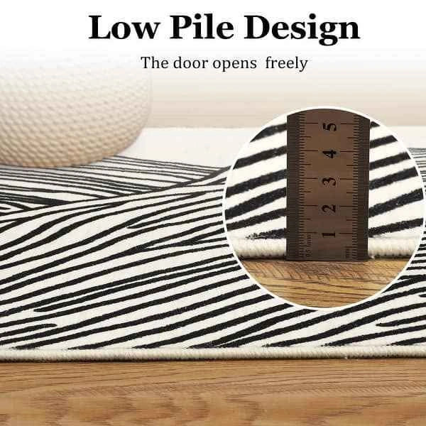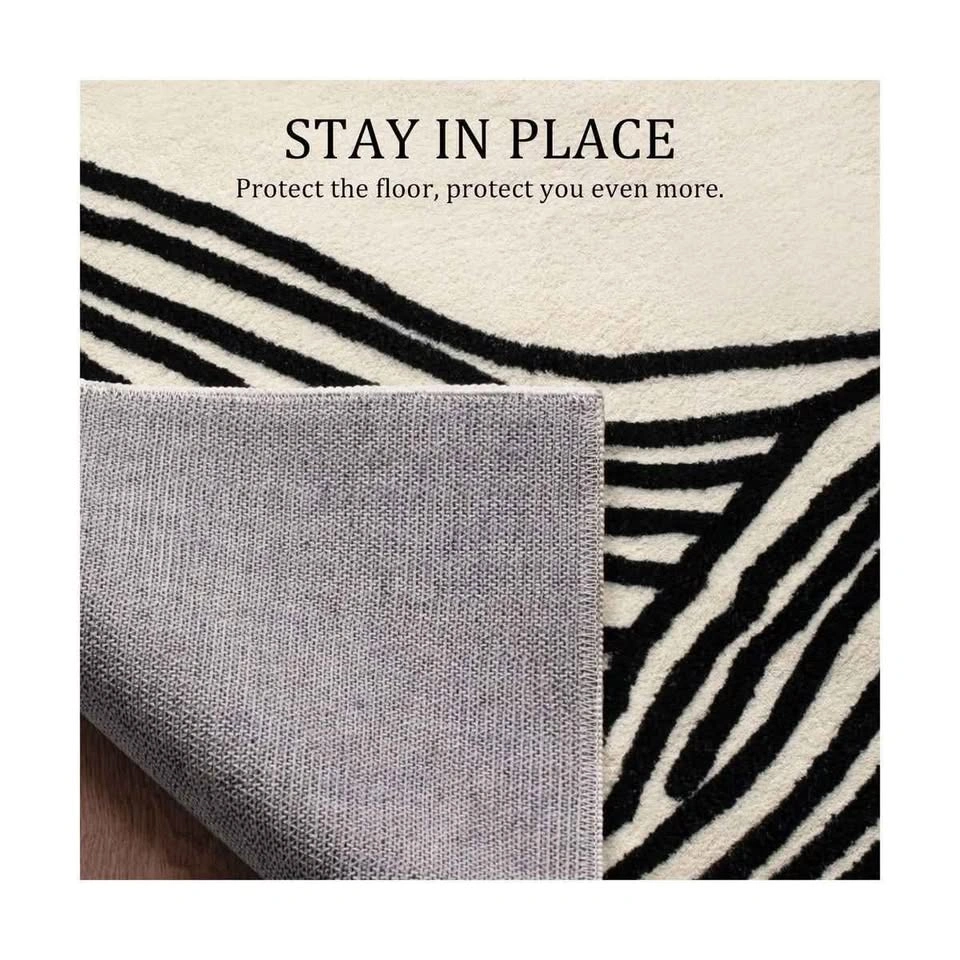 30Abstract Washable Rug — 5x7 This is not just a rug — it’s a statement piece. Black and ivory lines cut across a velvet-smooth base with the authority of a designer brushstroke. Bold, linear, and unapologetically modern, it sets the tone for a room that doesn’t whisper style — it declares it. Function is no compromise: machine washable, stain-resistant, with non-slip backing and reinforced edges. Luxury that doesn’t just live in a magazine spread — it lives in your home. Why you need this: Because ordinary rugs blend in. This one takes center stage. It transforms space with an editorial edge, the kind of quiet luxury you’d expect from the pages of Vogue. By appointment pickup