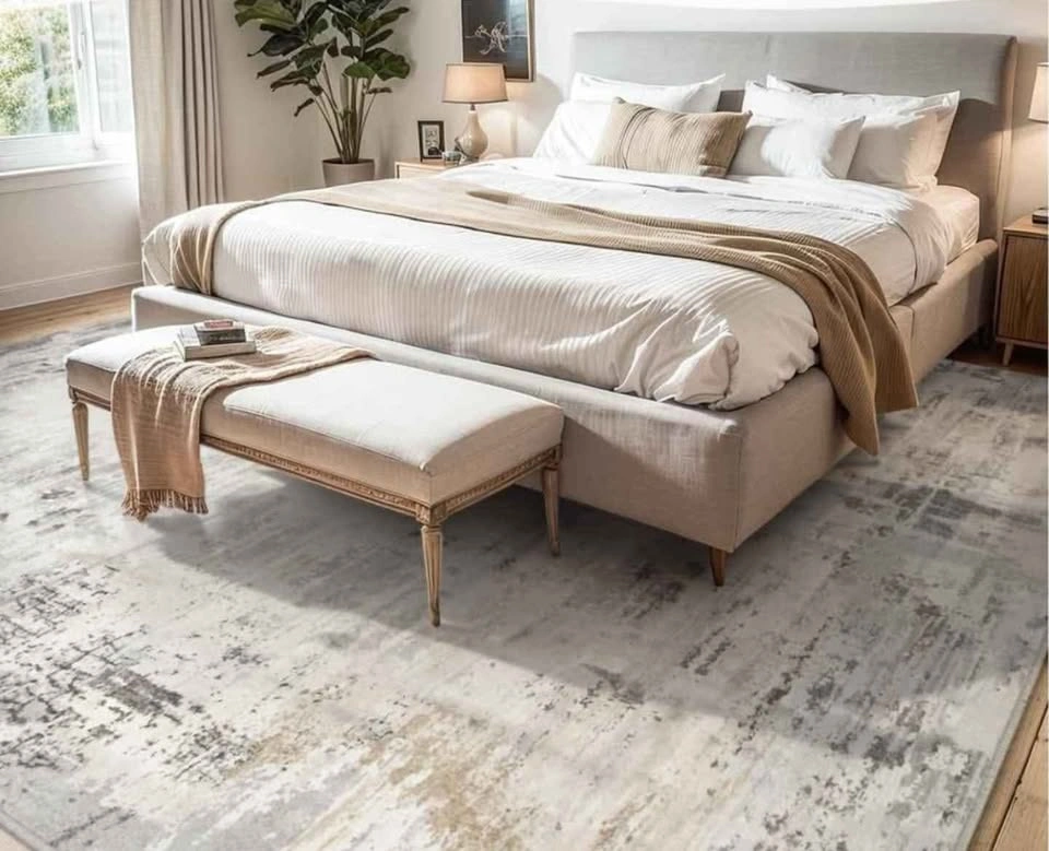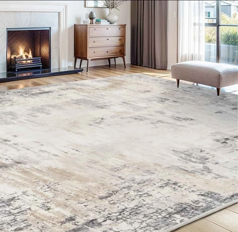 305x7 Washable Area Rug — Neutral Abstract Pattern A modern designer look with all the practicality you want. This 5x7 rug blends tones of cream, taupe, and gray in a soft, abstract wash that feels elegant and quietly luxurious. The low pile gives it a smooth texture and a polished look — perfect for bedrooms, living rooms, or home offices. Why you’ll love it: ➙ Machine washable and easy to care for ➙ Smooth, low-pile texture with a soft modern design ➙ Neutral tones that complement any decor style Serious buyers only By appointment pickup Thanks for visiting LUNEA — we have tons of rugs, comforters, and lighting available.