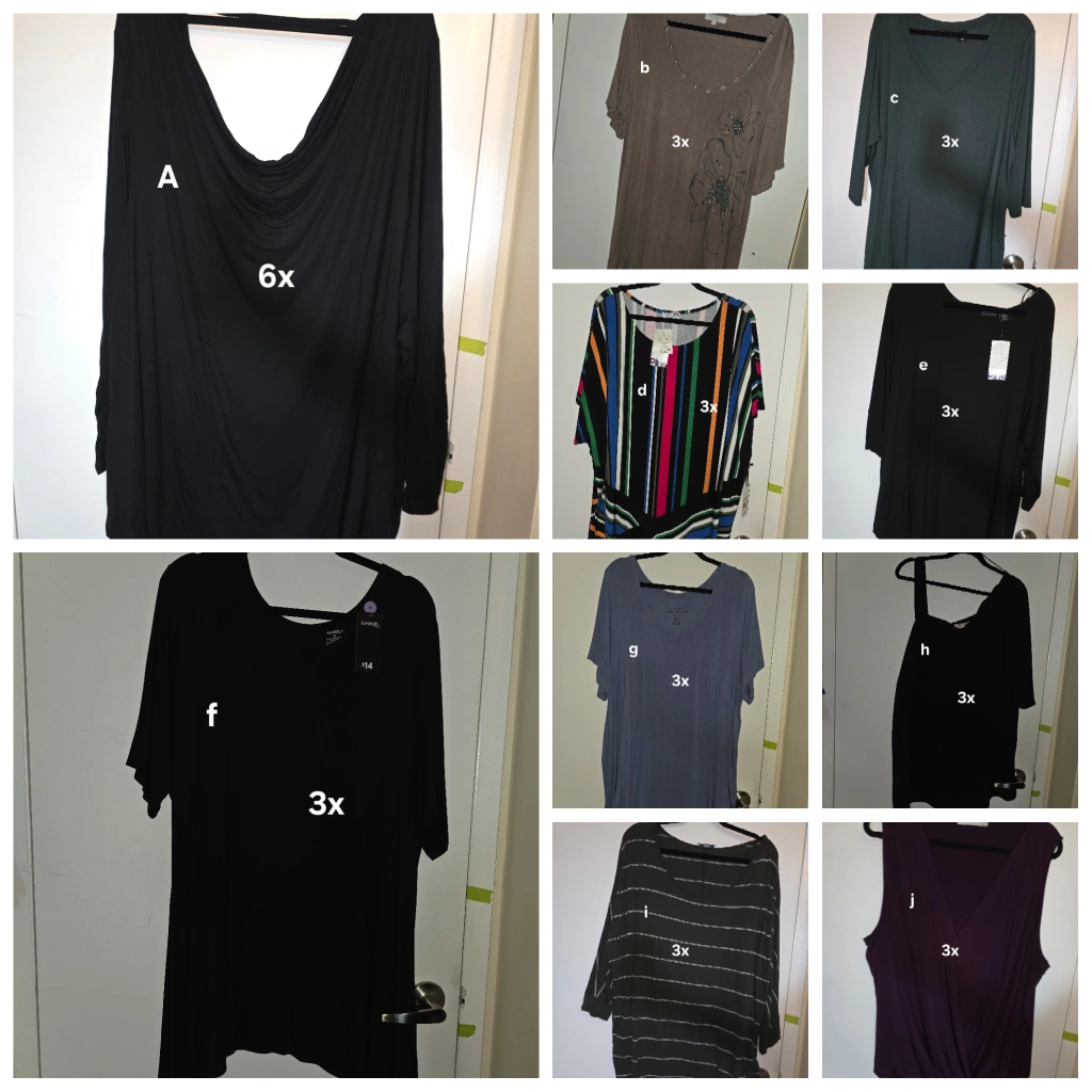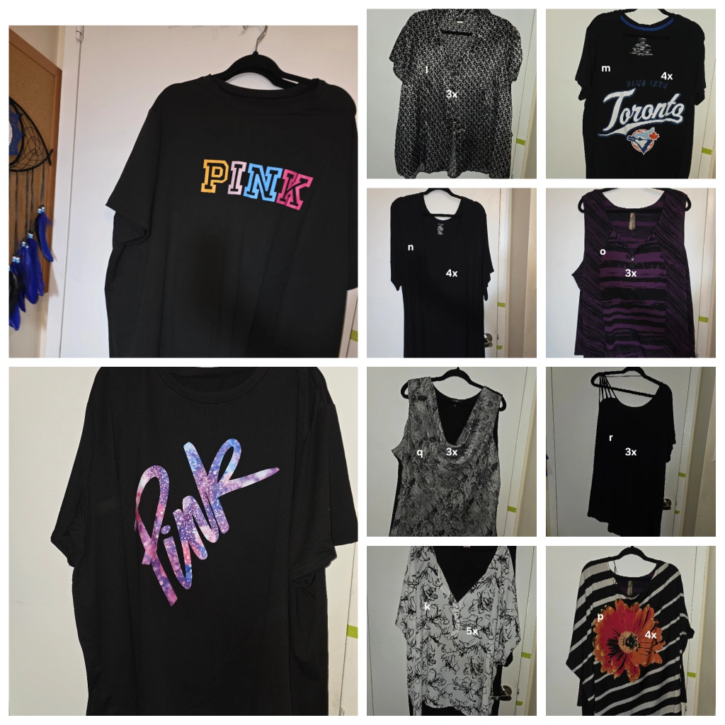 Selling a variety of plus-size tops in sizes 3X, 4X, and 6X. There are many different styles and colours to choose from! Perfect for updating your wardrobe with comfortable and stylish options. pickup near High Park Station. can be bought individually.