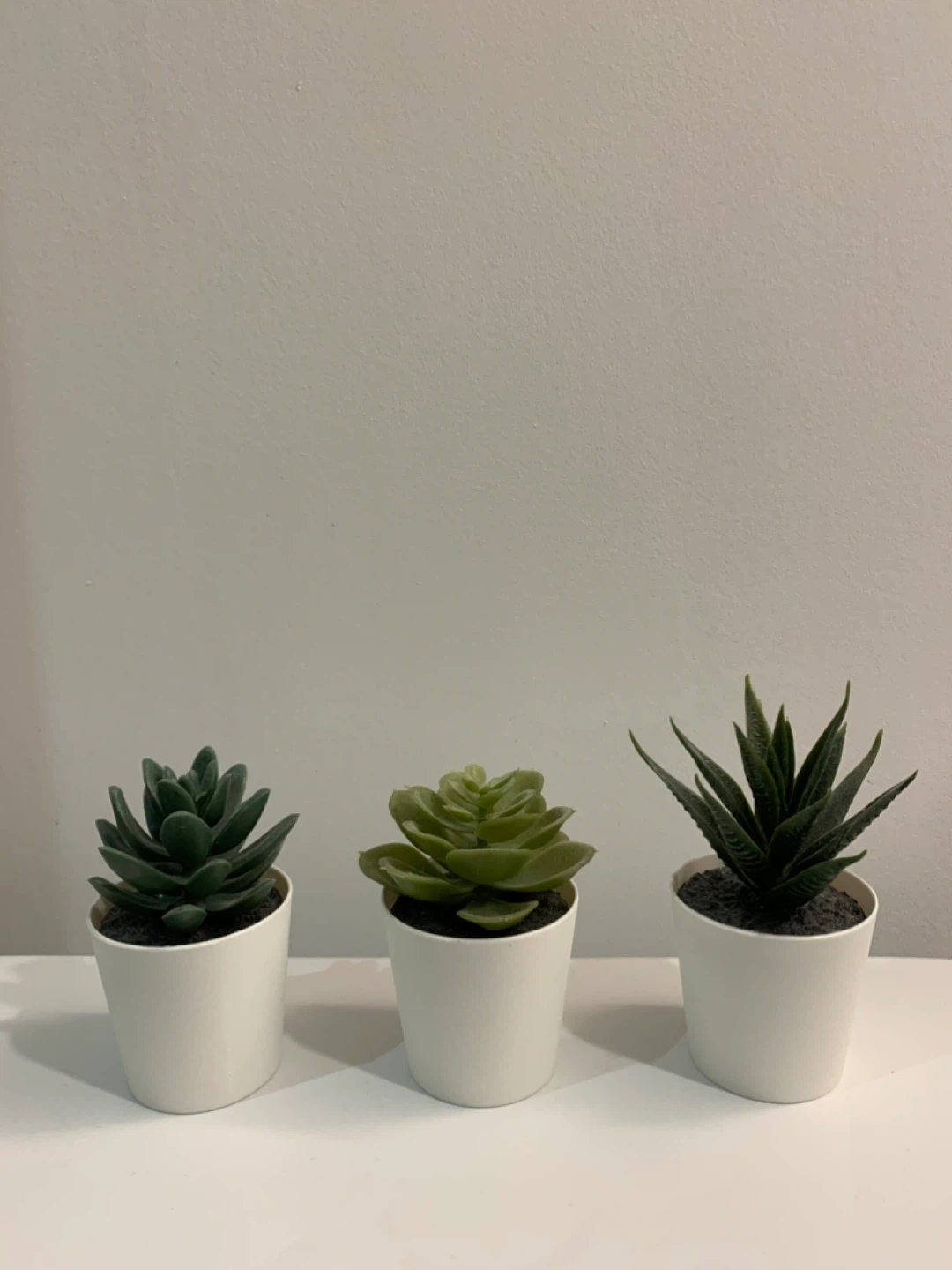 Selling three cute artificial succulents, each in its own little white pot! They're perfect for adding a touch of greenery to your space without any of the upkeep