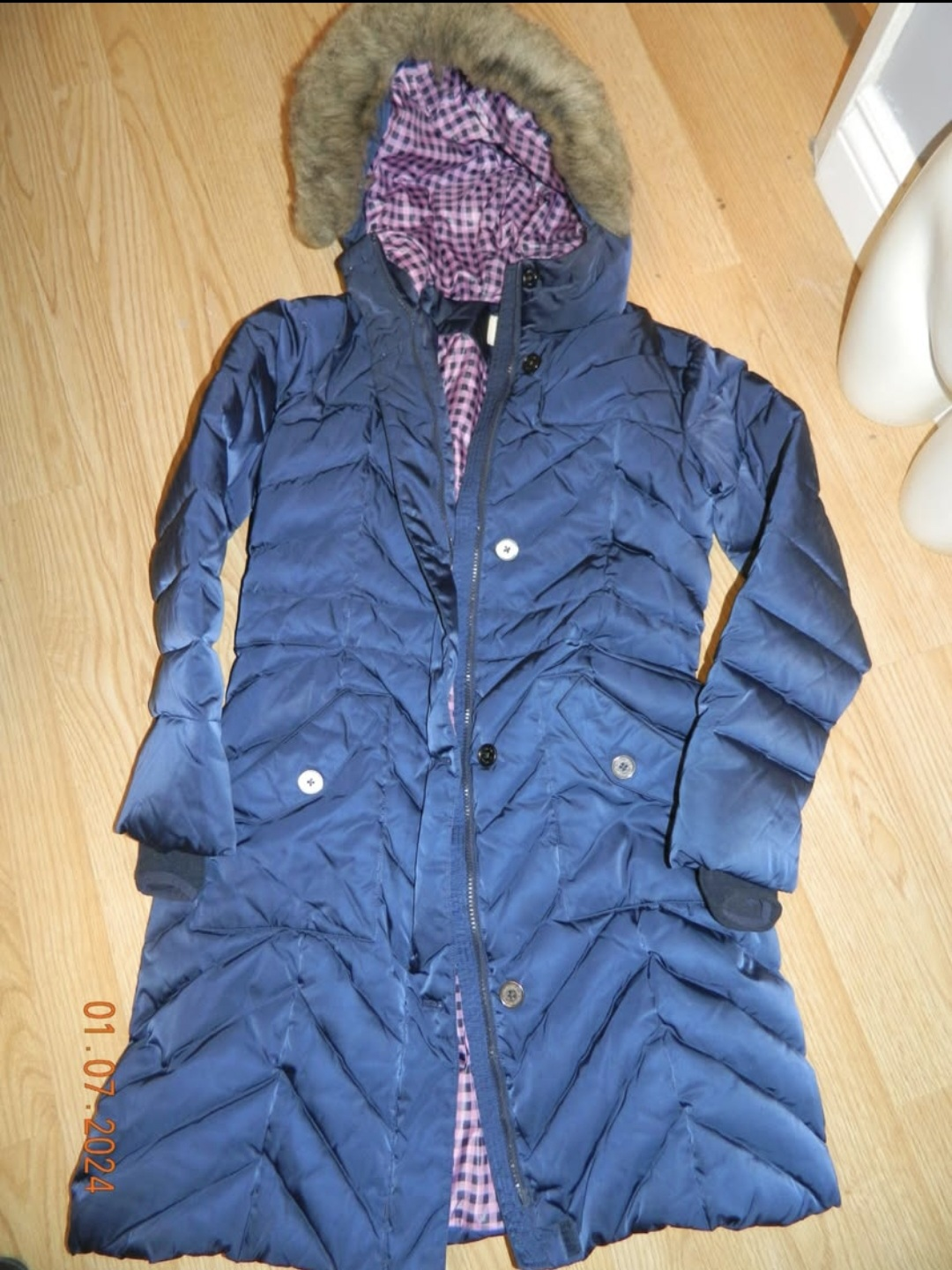 LANDS END GIRLS DOWN COAT..size 14...EUC only wear visible is fur around hood which is removeable(optional)