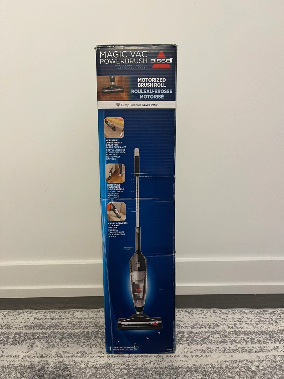 Selling a new Bissell Magic Vac Powerbrush. Features include a motorized brush roll, quick-release handle and an easy empty dirt cup. It easily converts to a hand vacuum for those quick clean-ups!