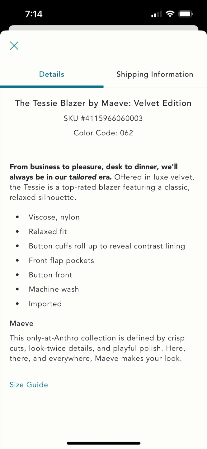 Buy & SellBNWT Anthropologie Maeve Velvet Tessie Blazer MBNWT Anthropologie Maeve Velvet Tessie Blazer M$50Retails $188+ duties and tax Size M Firm price Meet up near king stationConditionNewWHERE TO MEETMeet nearbyView MapSELLERHeatherOld Toronto1000+205 reviews0 chats·0 favorites·29 views