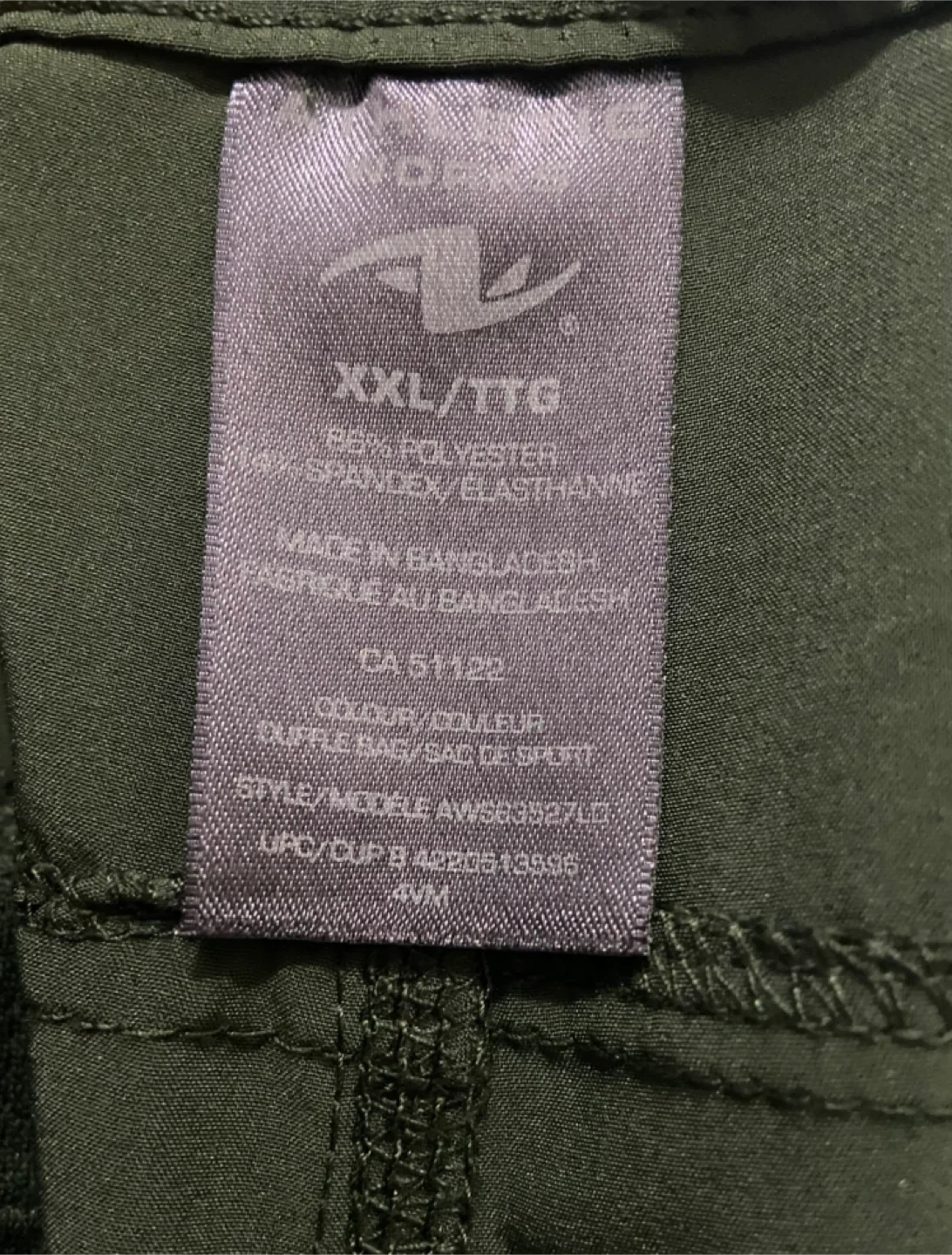 These Athletic Works shorts are in great condition and ready for a new home! They're a women's size XXL and feature a comfortable blend of 86% polyester and 14% spandex/elastane. The colour is a nice, versatile green, perfect for active wear or casual outings.