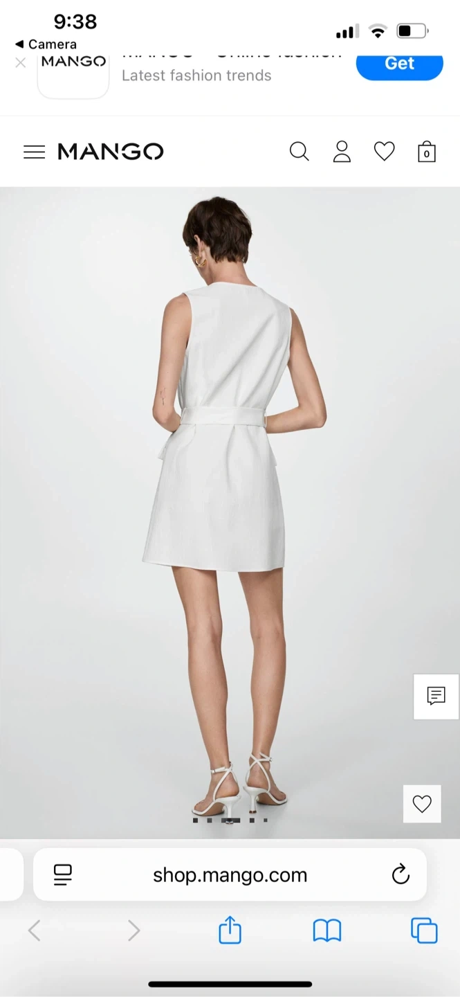 Selling a cute white mini dress from Mango! It features a V-neck and a belted waist, perfect for a sunny day out. The dress has a stylish and modern look, great for casual or dressy occasions.