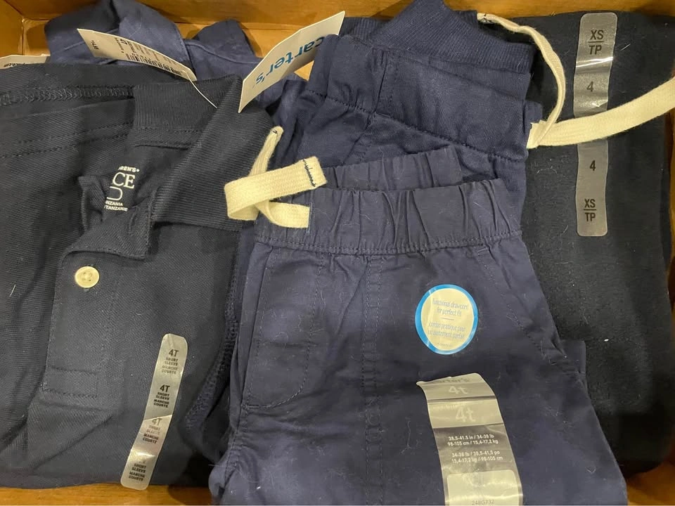 BNWT School Uniform Items Pic 1- 3T: Blue polo shirt and white polo shirt ($8 each). Sweatshirt- $12 Pic 2- 4T: 3 blue polo shirts ($8 each), 2 pairs of pants ($10 each), 1 pair of shorts ($8). Pic 3- 4T button-down shirt (worn once)- $12 Pic 4- 4T Shorts- $10 Pic 5- 4T Long Sleeve Button Down Shirt (worn once)- $12 Queensway & Islington