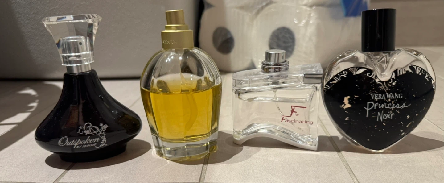 Blind bought these off Facebook and none of them I like the scent of so trying to get my money back that I paid cash only Perfume Lot – Gently Used Designer Fragrances Selling a bundle of gently used perfumes from well-known designers: Princess Noir by Vera Wang Outspoken by Fergie So De La Renta by Oscar de la Renta F for Fascinating by Salvatore Ferragamo All bottles have been gently used and still contain a good amount of fragrance.
