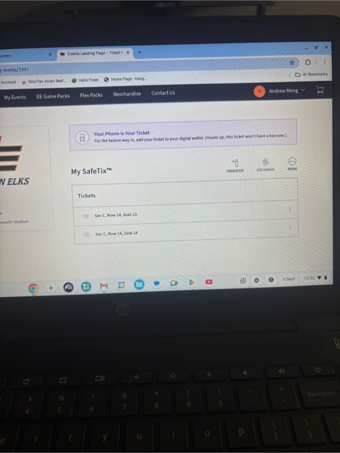 10Selling two tickets to see the Edmonton Elks! The seats are located in Sec C, Row 14. They're digital tickets, so they can be easily transferred to your phone through SafeTix.