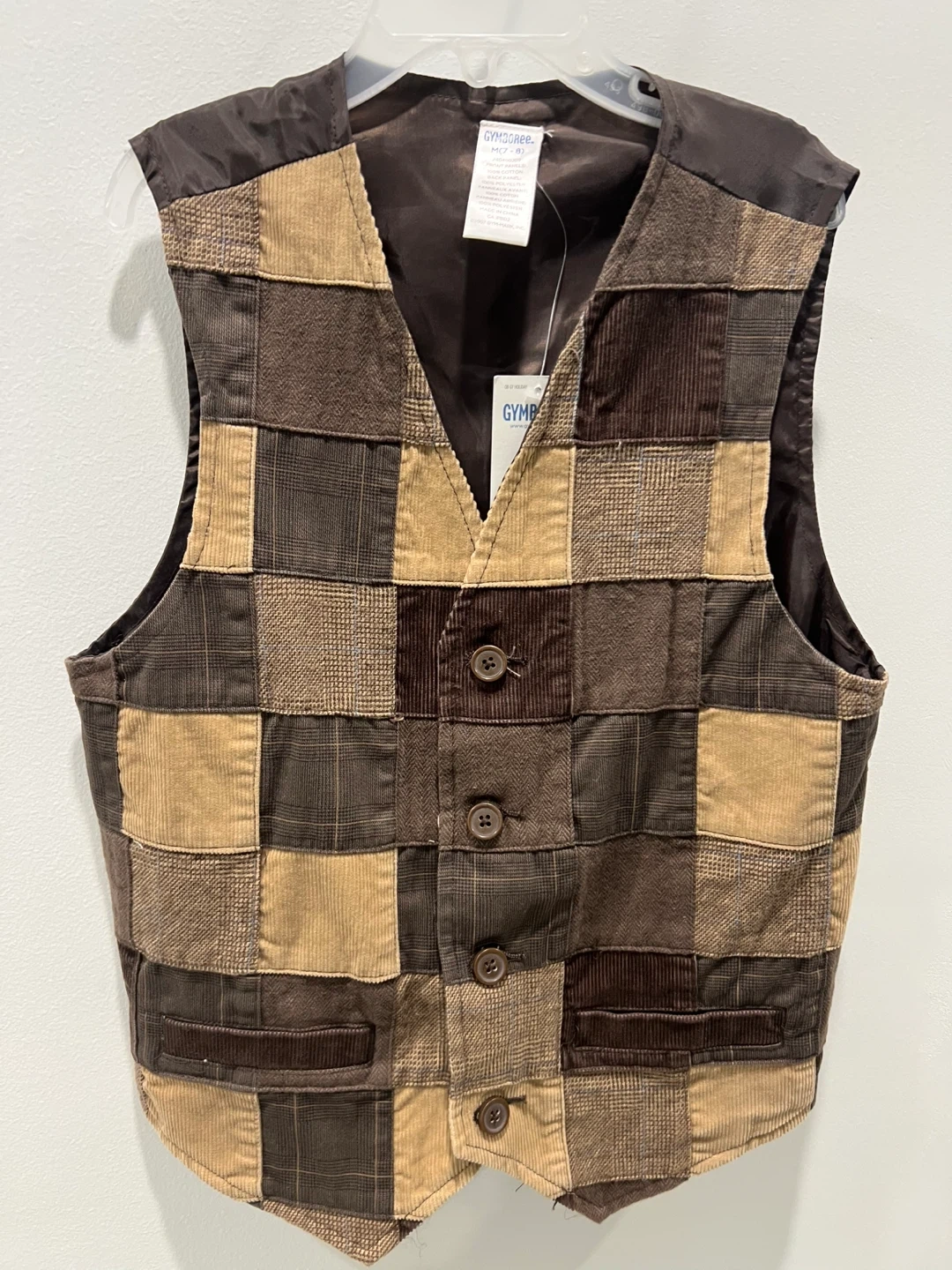 This adorable new Gymboree vest is perfect for your little one's wardrobe, size M (7-8). The patchwork design adds a touch of vintage charm! It features a button-up front and a smooth lining for comfort.