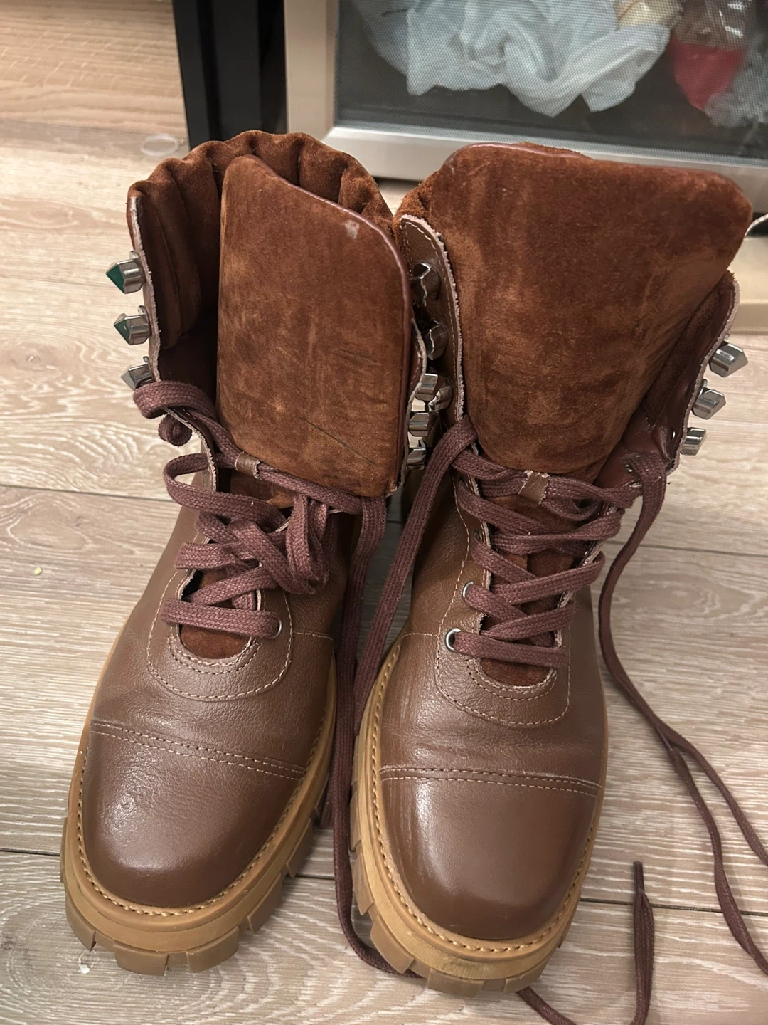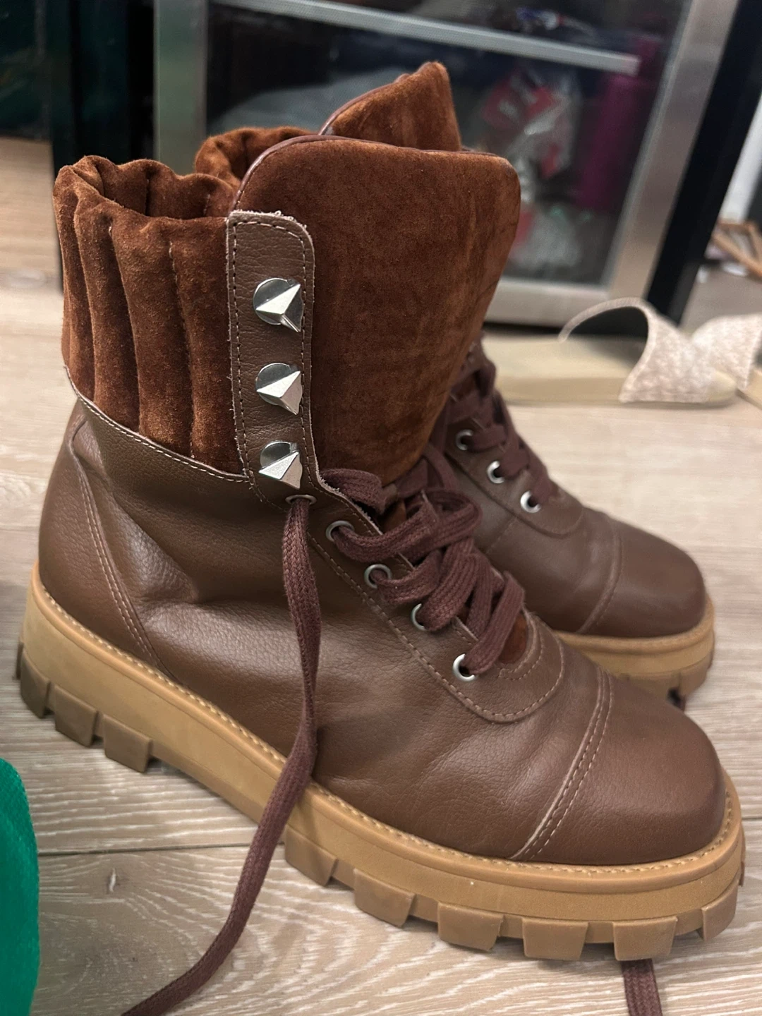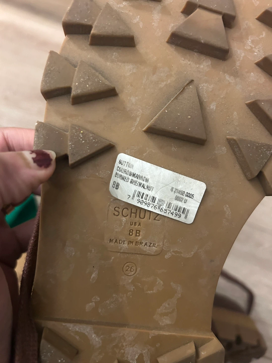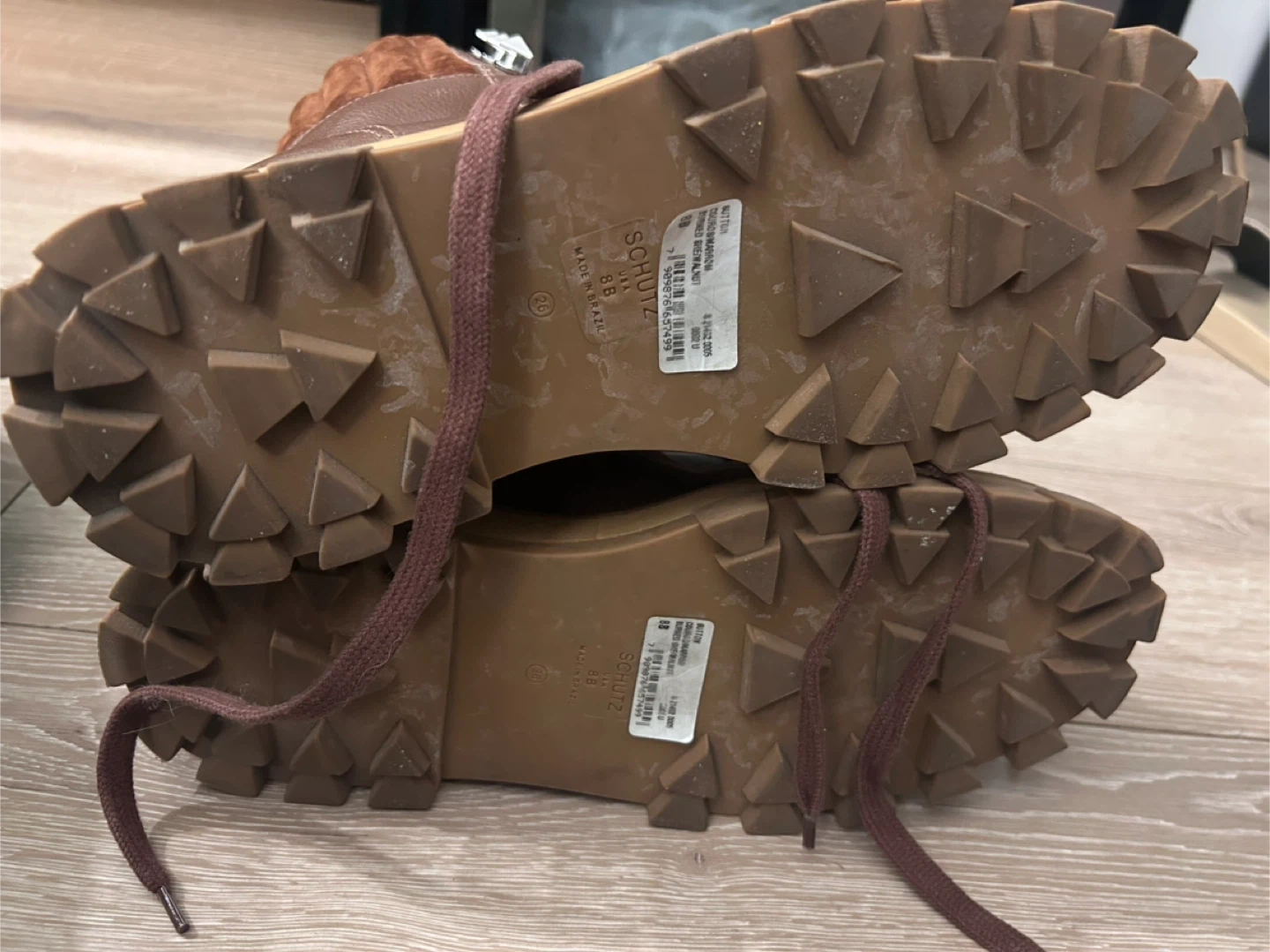 Selling a pair of Schutz Button boots in a lovely brown colour! They're a size 8. These stylish boots are perfect for adding a bit of flair to any outfit. Made in Brazil!
