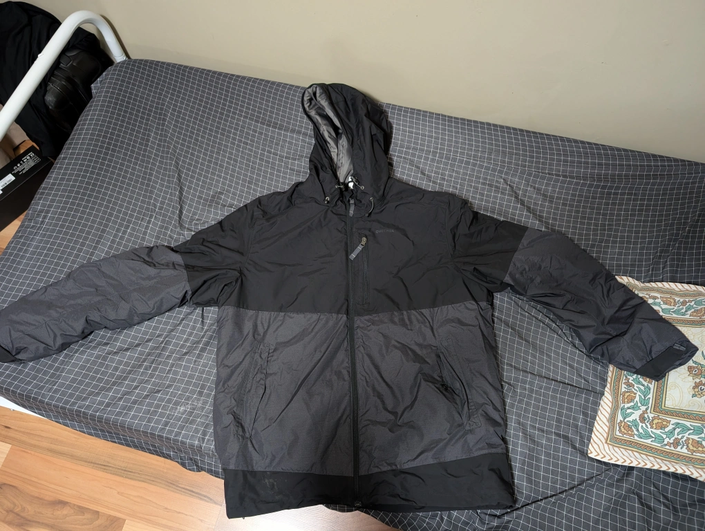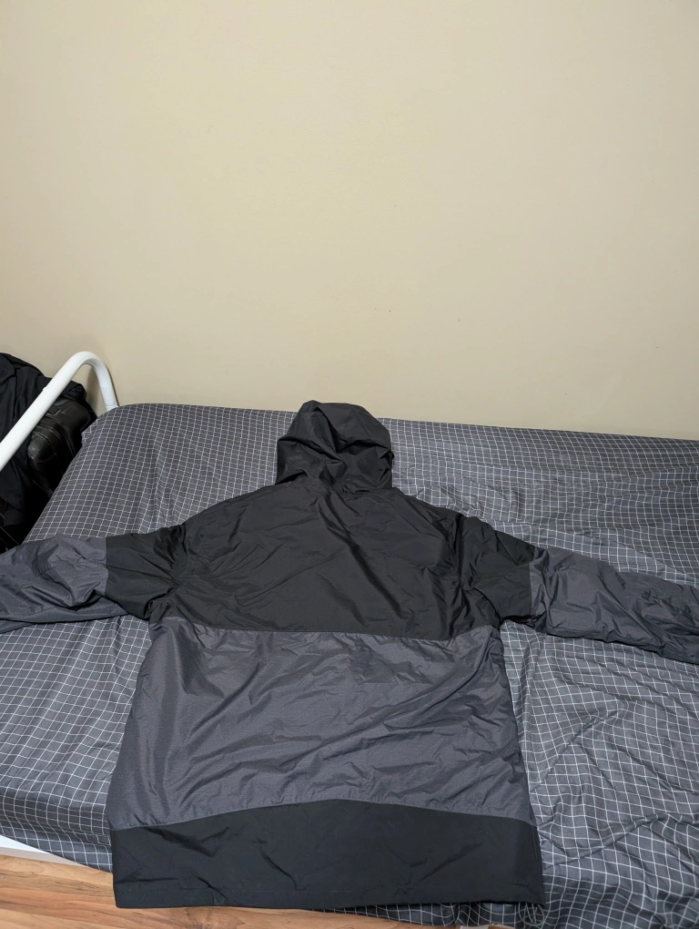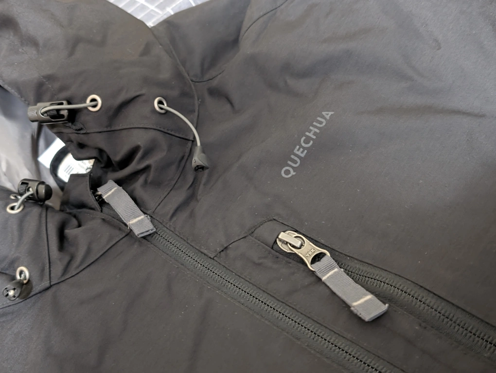Selling a Quechua waterproof hiking jacket in black and grey. It's in great condition and ready for your next outdoor adventure! Perfect for hiking or everyday wear, this jacket will keep you dry and comfortable