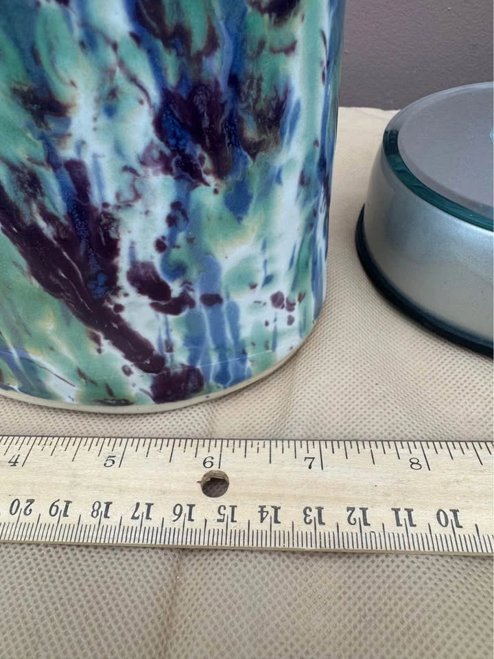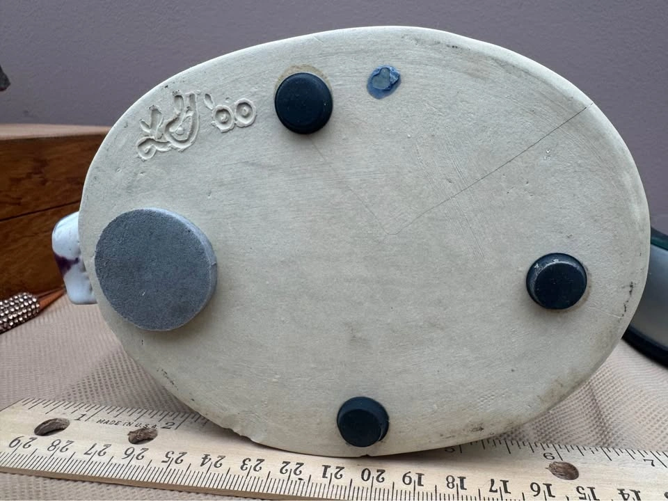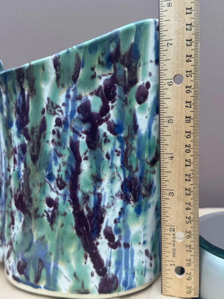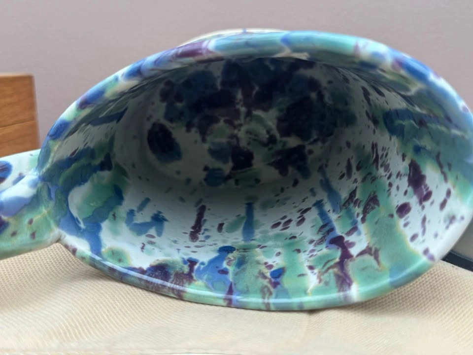 On offer is this beautiful unique hand crafted pottery milk jug that holds one litre milk bags. Could also be used as a vase. Signed and dated. Hand painted glazing. There are a few small chips along the bottom edge that do not affect usage. Price reflects. Pet free and smoke free home. Birchmount and Kingston Rd area.
