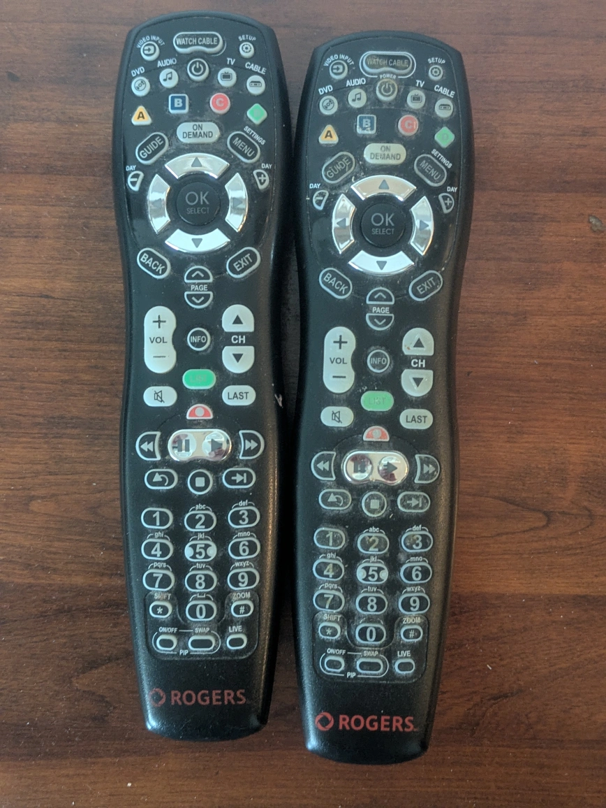 Selling two Rogers remote controls. They're both in good working condition and ready to use with your Rogers cable box. Perfect if you need a spare or replacement!
