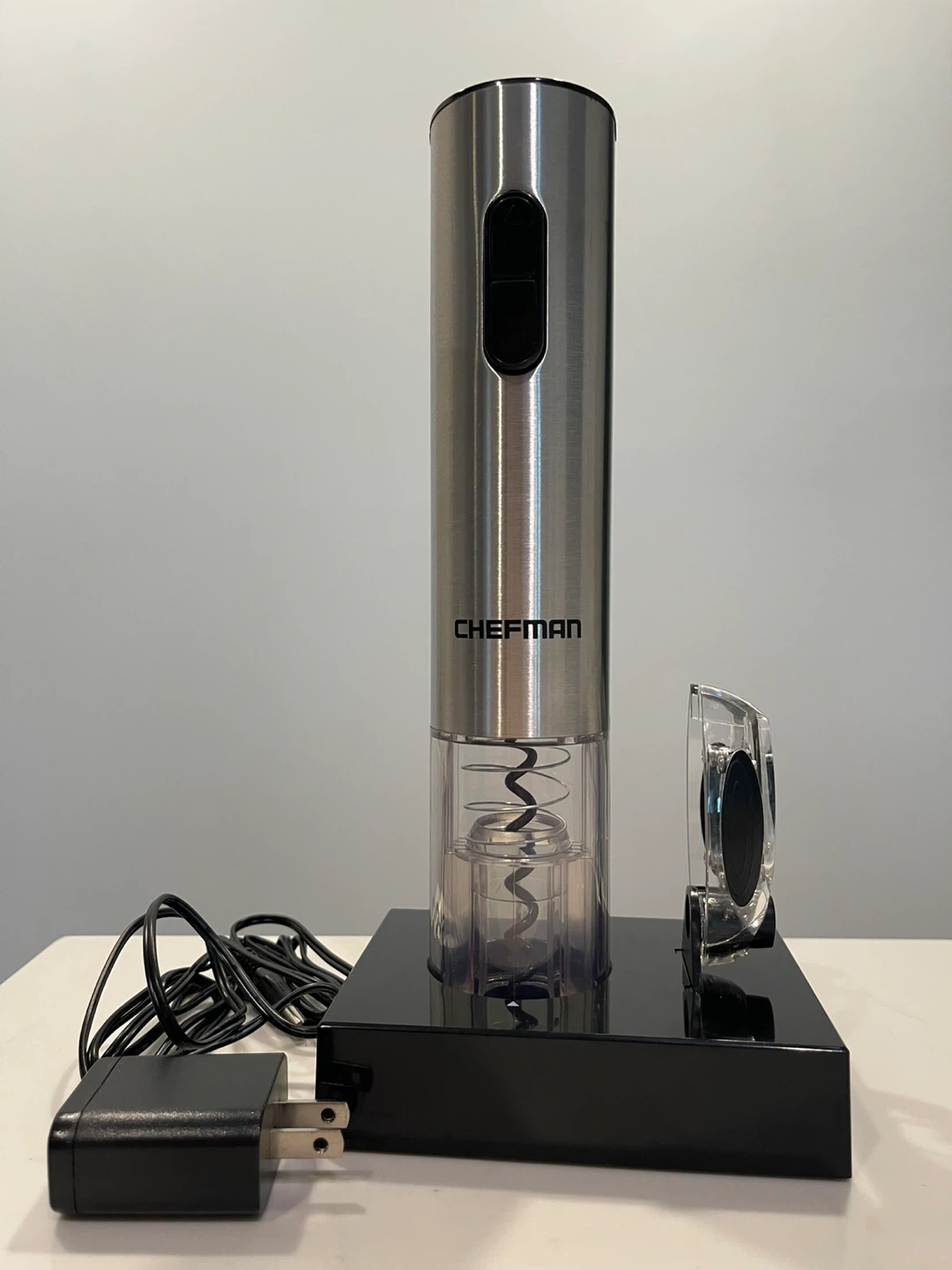 Selling a Chefman electric wine opener. It comes with the charging base and foil cutter. Perfect for opening wine bottles with ease!