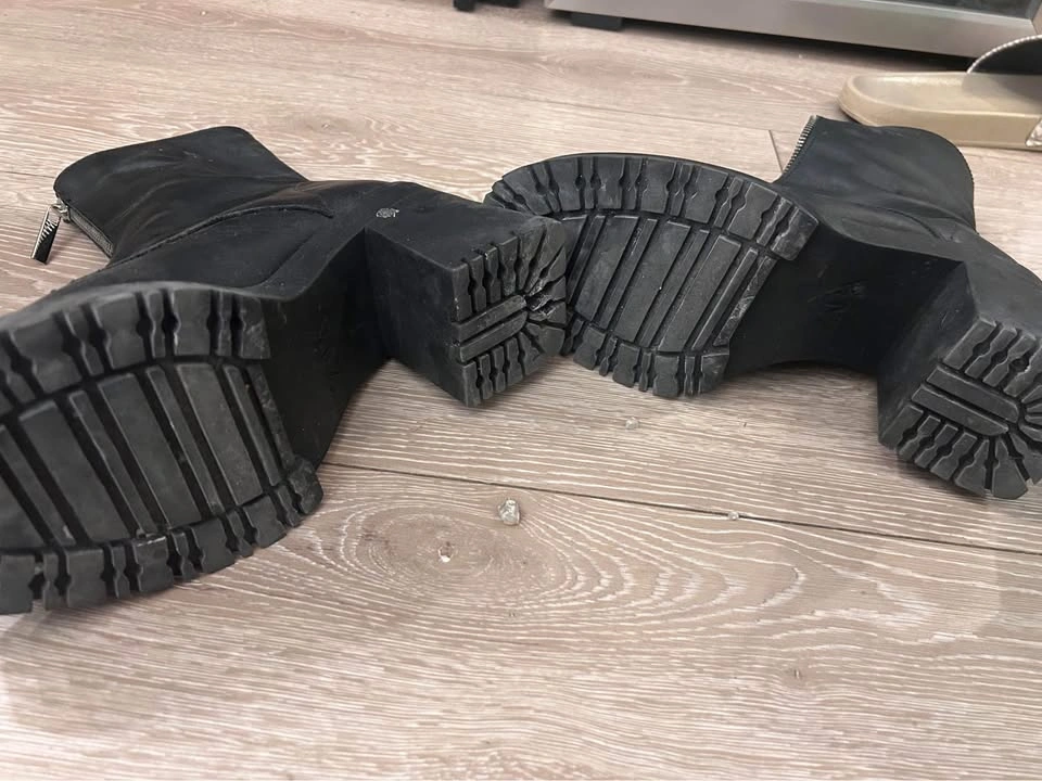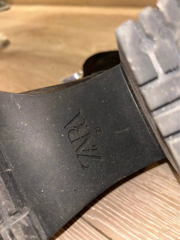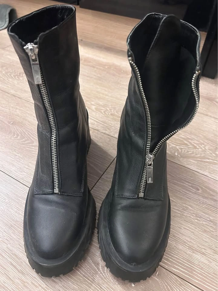 Selling a pair of Zara black leather heeled boots in size 39. They feature a front zipper detail and a chunky heel. Great for adding a bit of edge to your outfits! Worn just once, selling because I’m moving