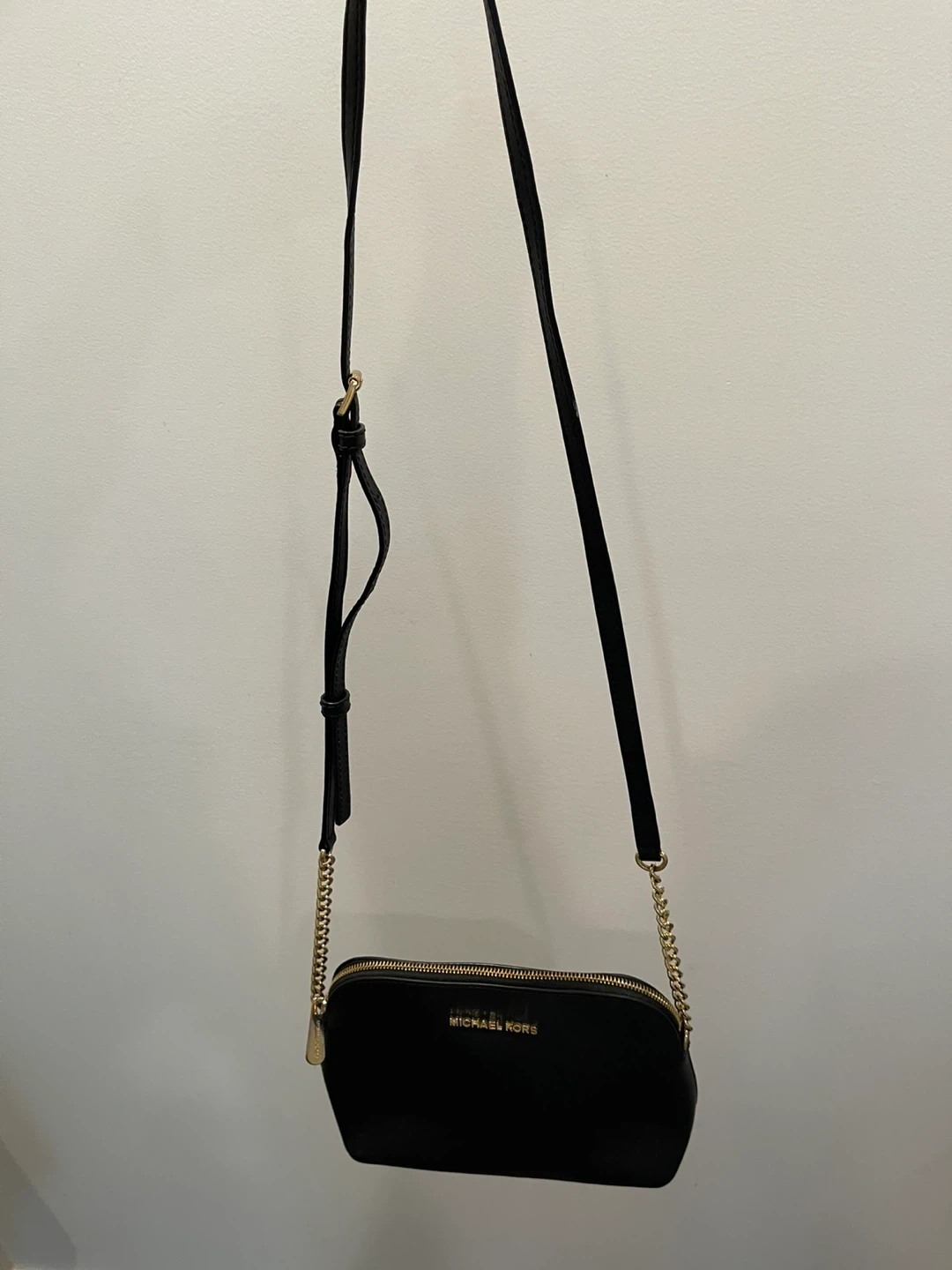 Selling a gently used Michael Kors crossbody bag in black. It's in great condition and perfect for everyday use! Features a zipper closure and an adjustable strap.
