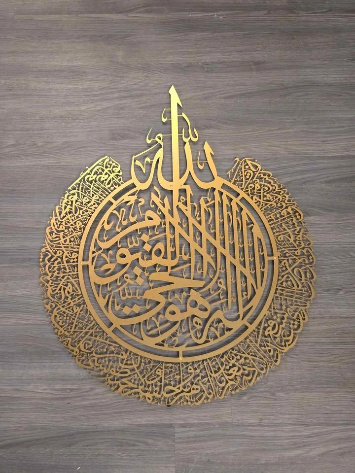 Beautify your home with this elegant Ayatul Kursi Metal Wall Art, a powerful verse from Surah Al-Baqarah (2:255) known for its deep spiritual meaning and protective blessings. This piece brings together modern Islamic design with timeless Arabic calligraphy, making it a stunning focal point for any space. Expertly crafted from high-quality stainless steel and finished in luxurious gold, this art piece is ideal for adding a meaningful and sophisticated touch to your living room, prayer area, hallway, or office. Whether you're decorating for Ramadan, gifting for Eid, or celebrating a housewarming or wedding, this wall art makes a heartfelt and lasting impression. ๐ Product Details - Design: Ayatul Kursi (Verse from Surah Al-Baqarah) - Material: High-quality metal (stainless steel) - Size: 60 ร 73.5 cm (23.6" ร 28.9") - Finish: Gold - Mounting: Ready to hang ๐ A Thoughtful Gift For: Ramadan & Eid Celebrations - Islamic Weddings & Housewarmings - Hajj & Umrah Return Gifts - New Home Blessings & Spiritual Reminders Let the words of Allah (SWT) bring peace, protection, and elegance to your space.