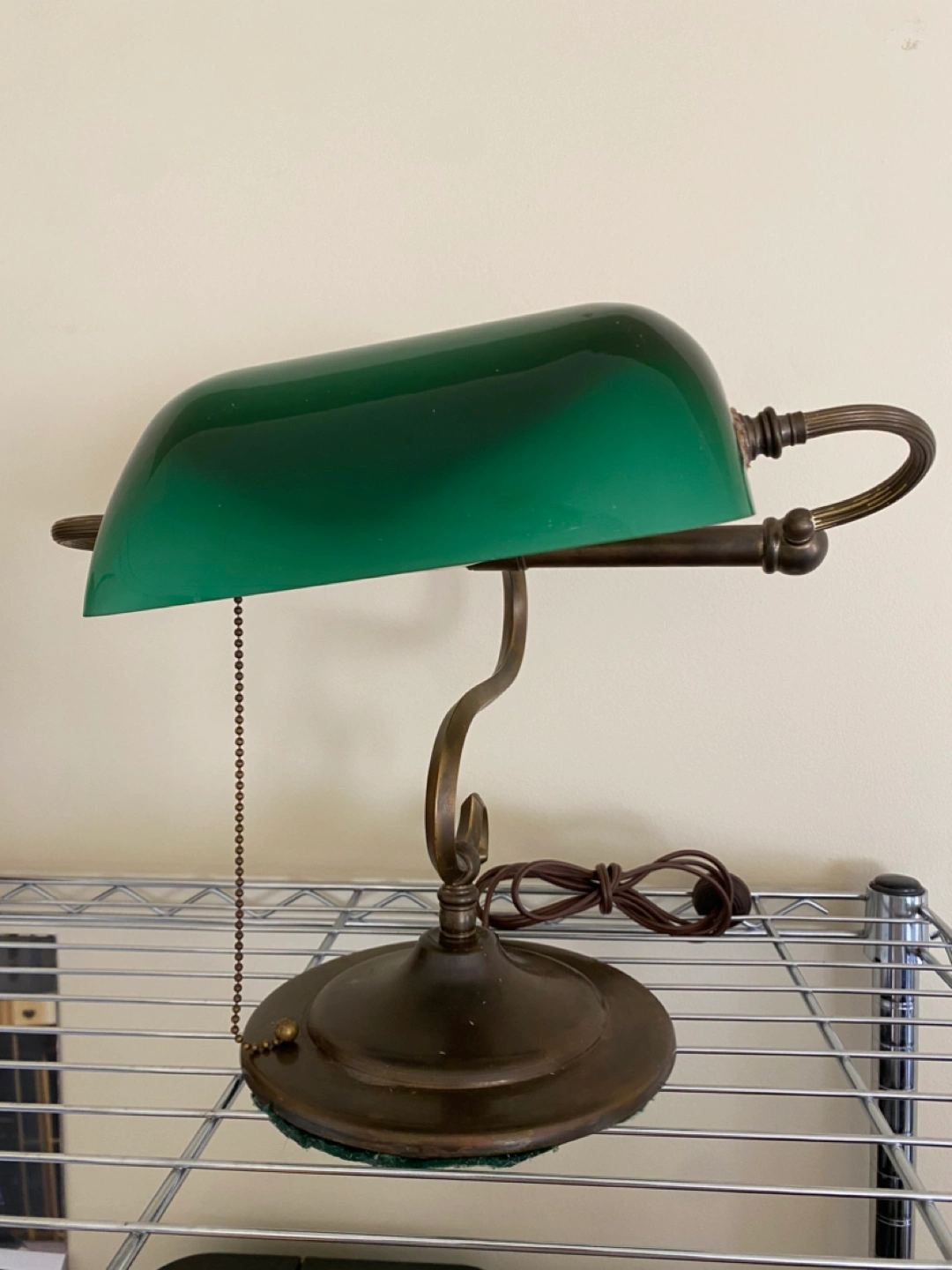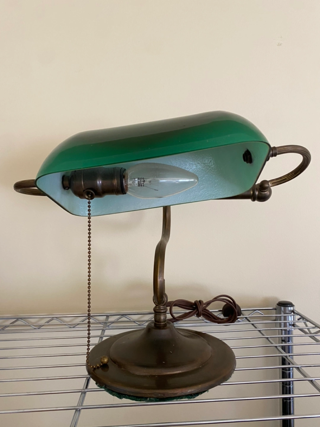 Lovely vintage condition, no cracks in the glass. It works but if you’re a stickler you might want to have it rewired.
