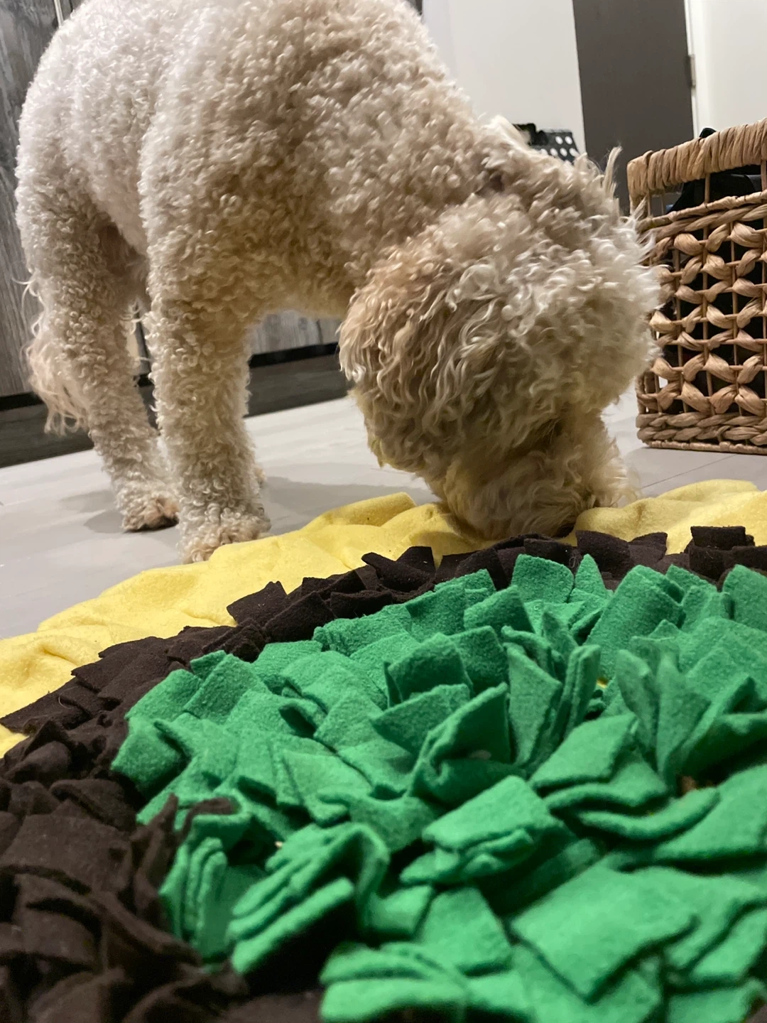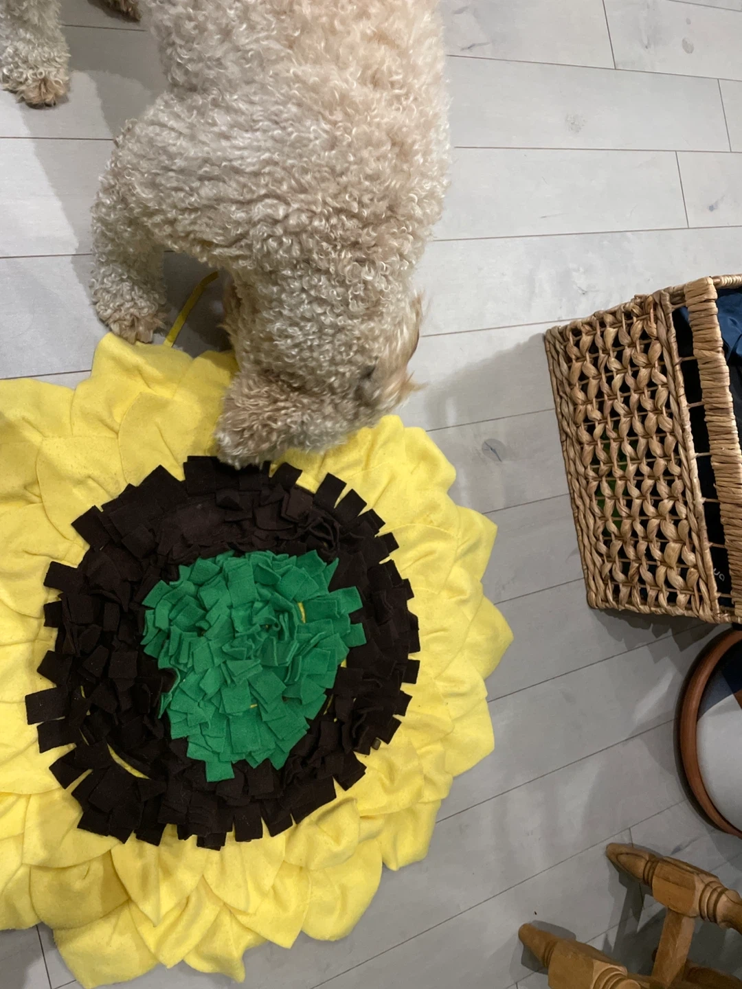 This sunflower snuffle mat is a great way to keep your furry friend entertained and mentally stimulated! It's perfect for hiding treats and encouraging natural foraging behaviours. The bright colours and fun design will make it a welcome addition to your pet's toy collection