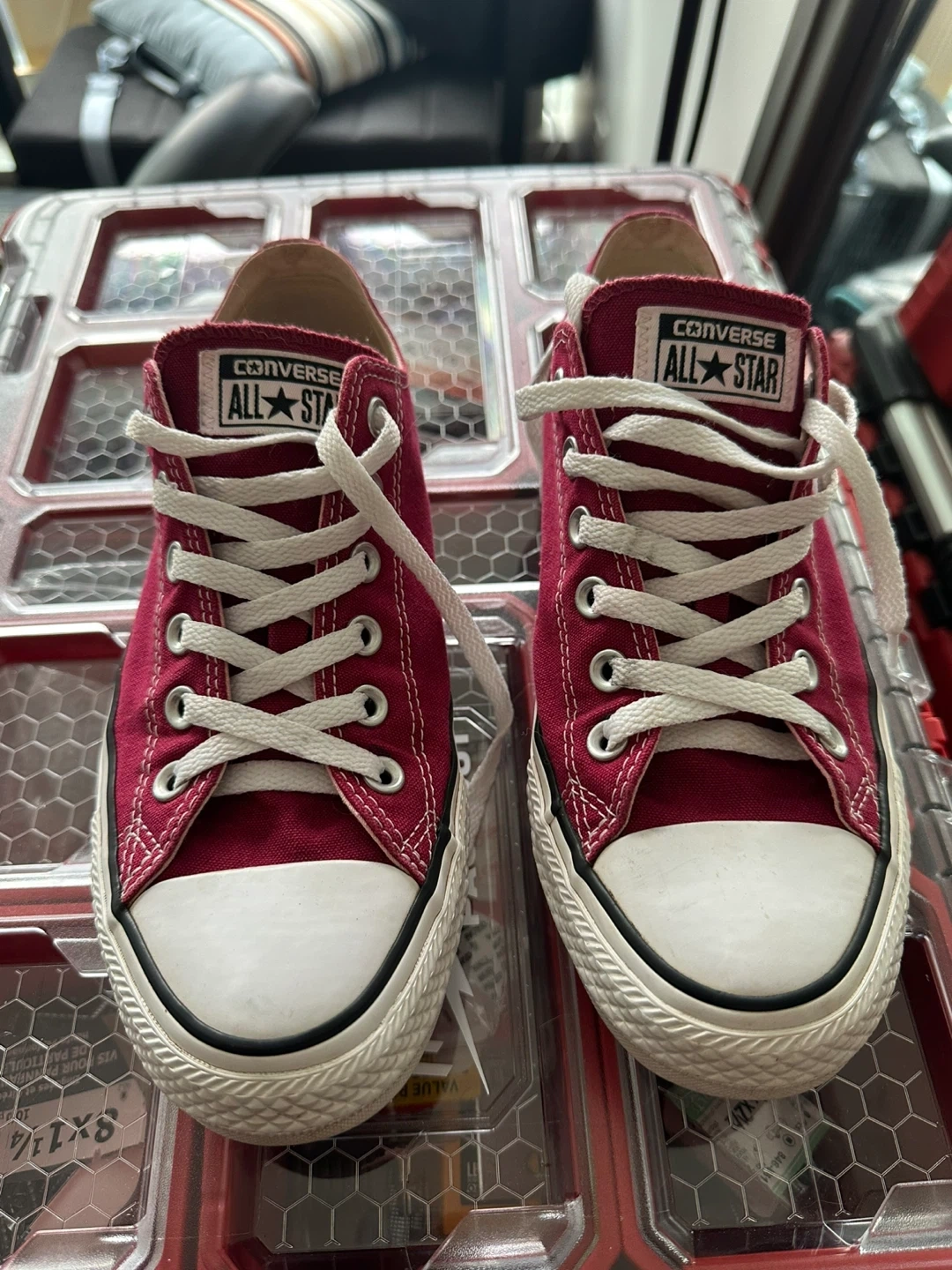 Selling a pair of Converse All Star low top sneakers in a nice maroon colour! These are a US men's size 7, which is a women's size 9. They're in great shape. Pick up in Brentwood Concord
