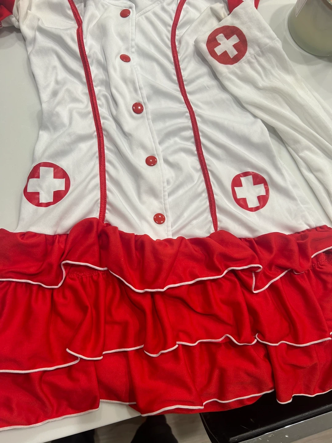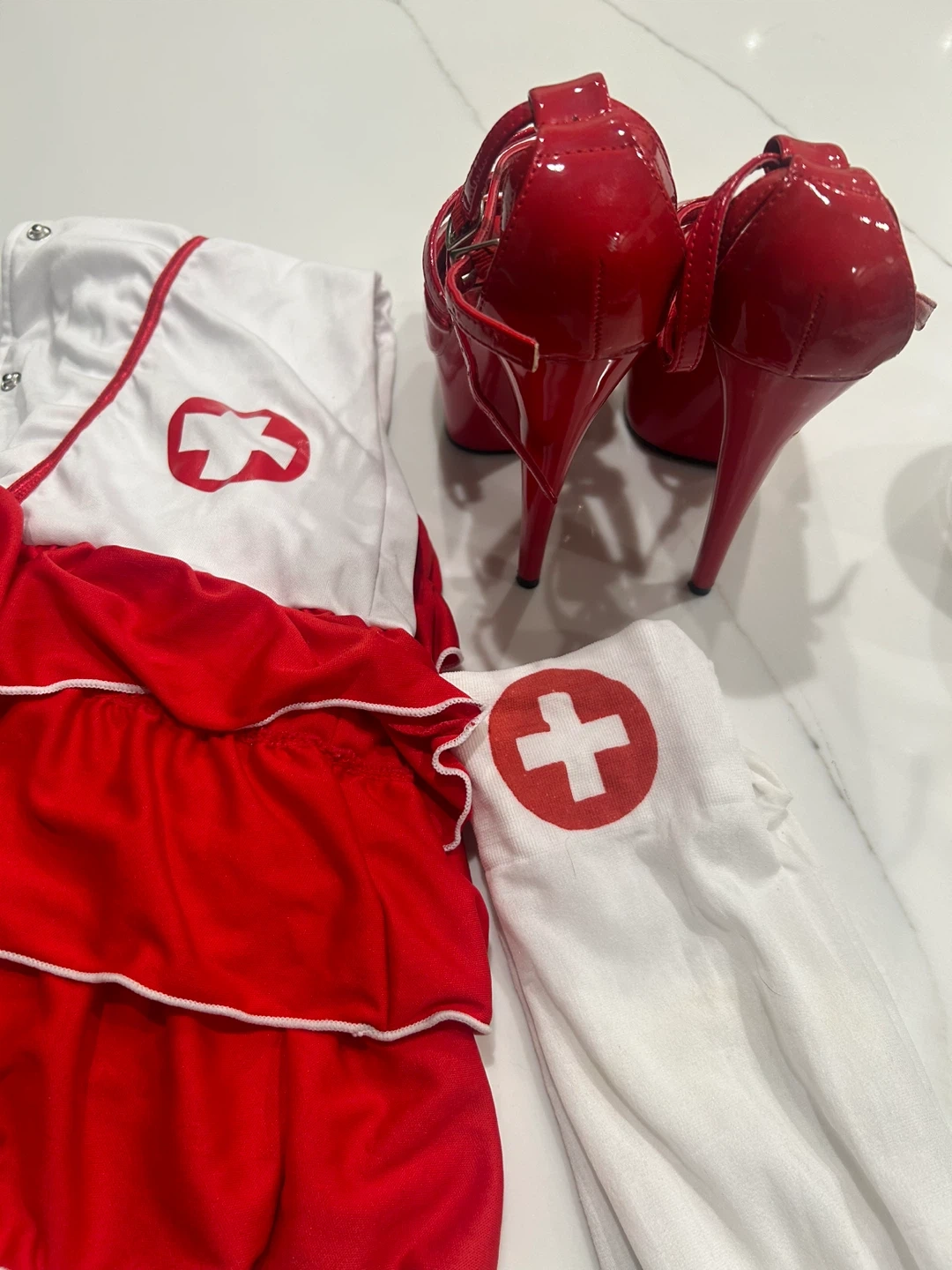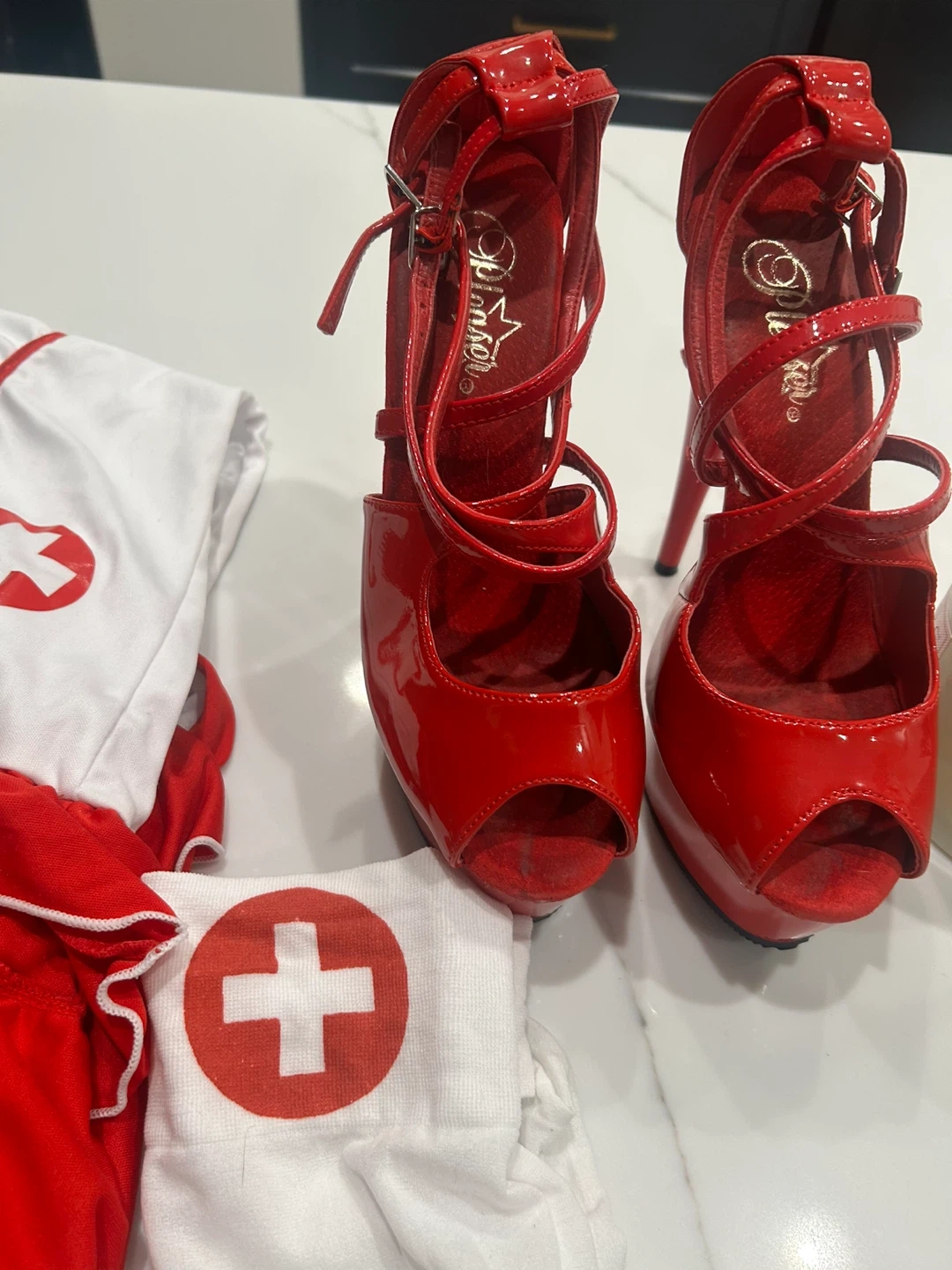 1000+Selling a nurse costume with red heels. The costume is white with red accents and crosses. Comes with stockings , The heels are a matching red colour. Bought costume for 80 originally and heals were 130 , selling for both for amazing deal .15 nurse costume . 25 for shoes . Or bundle for 35 too many Halloween costumes and decluttering bought at chuckles Halloween store and spirit of Halloween