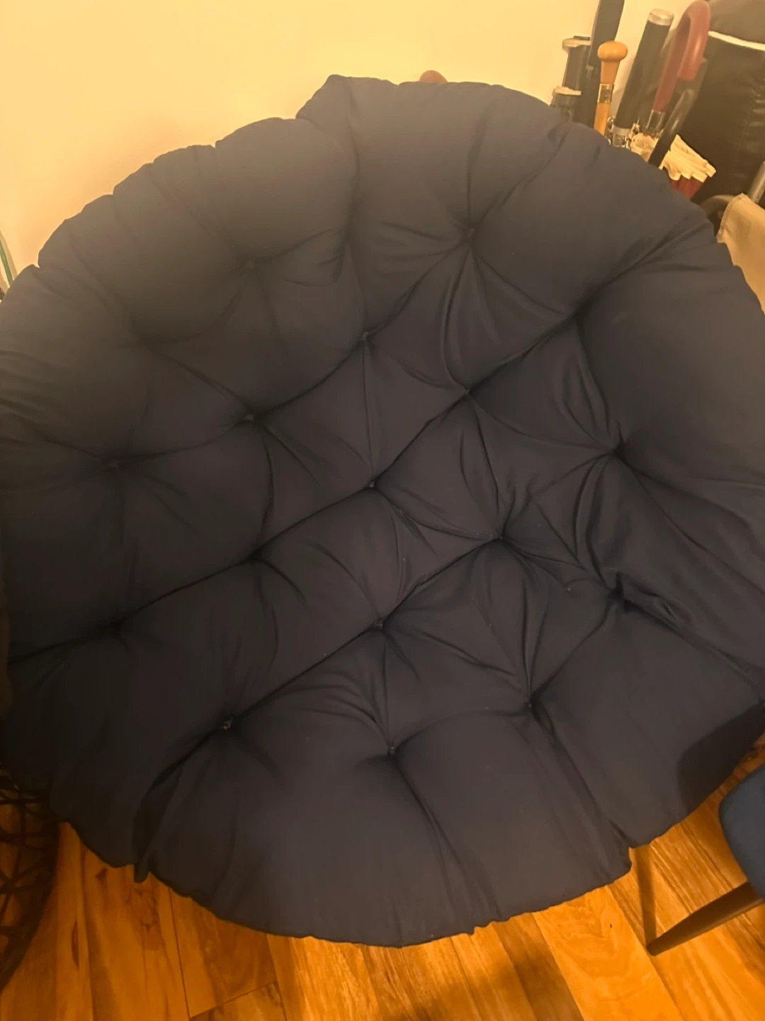 Selling a comfortable papasan chair in navy blue! It's in great condition and ready to add a cozy touch to your space. Perfect for lounging and relaxing after a long day. Price for 2 set also negotiable!!
