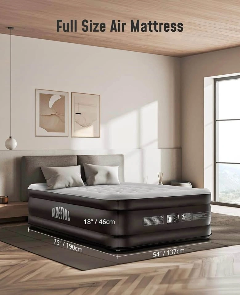 125Dream big comfort in minutes! This brand new Airefina 18" Full-Size Inflatable Mattress self-inflates in just 3 minutes, includes built-in pump, comes with carry bag — perfect for guests, travel, or camping. Features: • Full Size (about 75×54×18 in) — sleeps two adults comfortably • Built-in electric pump — inflation & deflation fast & easy • Sturdy multilayered PVC + flocked top — comfy & durable • Comes with carrying/storage bag — super portable • Never used, still in original box 📍 Pick up: Riverbend, Calgary 💵 Price: $110 CAD (slightly negotiable for serious buyers)