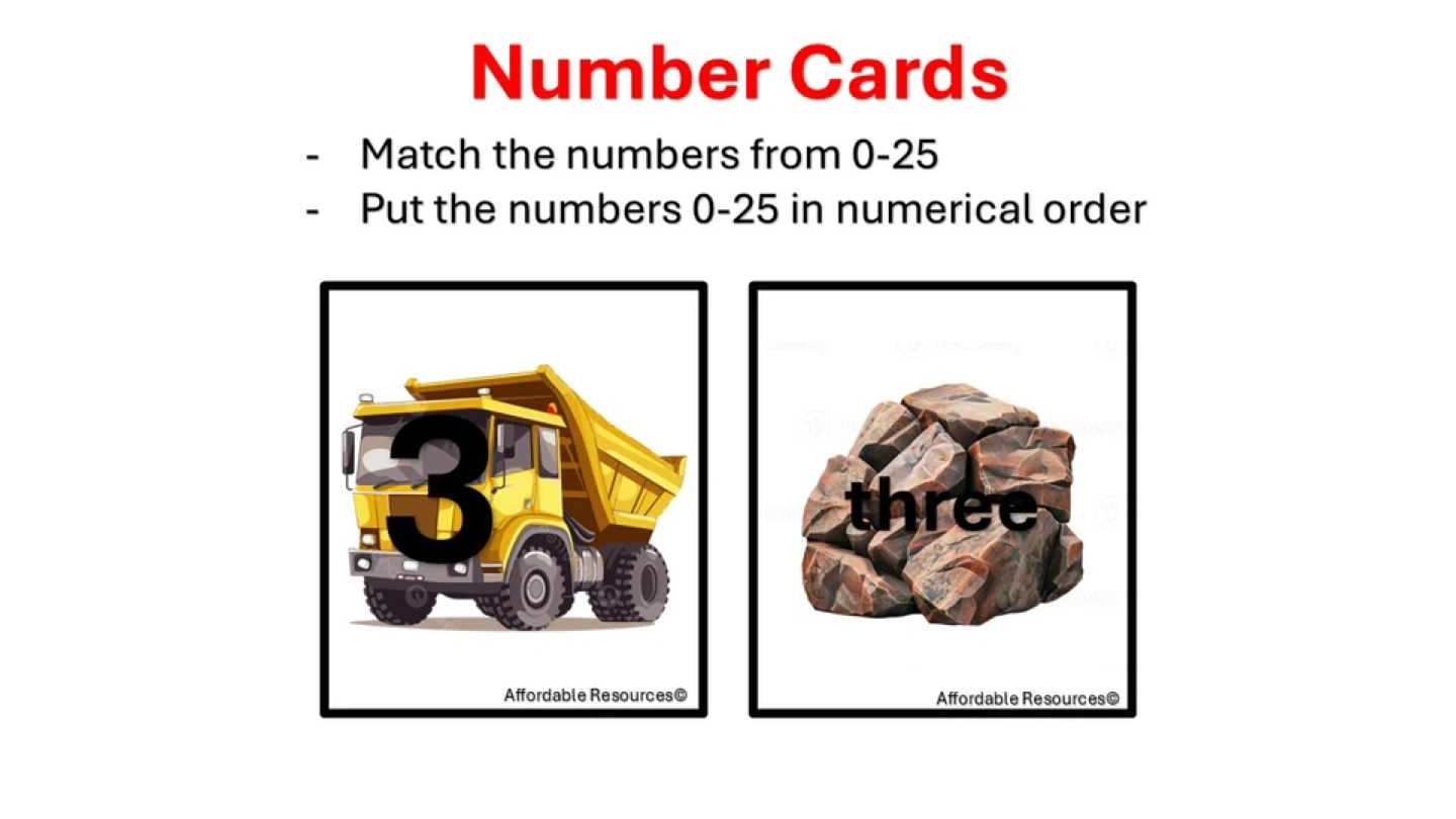 124Number cards to help match the numbers from 0-25 and put the numbers 0-25 in numerical order. This is a fun way to learn your numbers. This downloaded PDF sells for $1.00. Message if interested in purchasing. Other themes are available such as: Princess and magic wand Dog and dog house Car and cat stand Fish and fishbowl