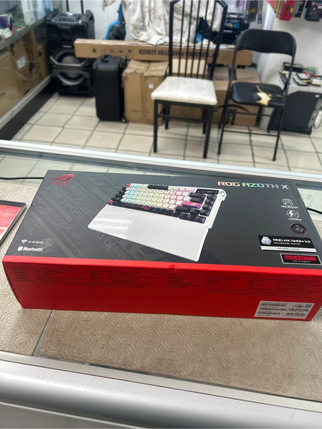 Selling a brand new ASUS ROG Azoth X gaming keyboard, still sealed in its original box! This keyboard features ROG NX Snow V2 mechanical switches for a smooth and responsive typing experience. It also boasts a sleek design and customizable RGB lighting to match your setup! Perfect for gamers and keyboard enthusiasts alike