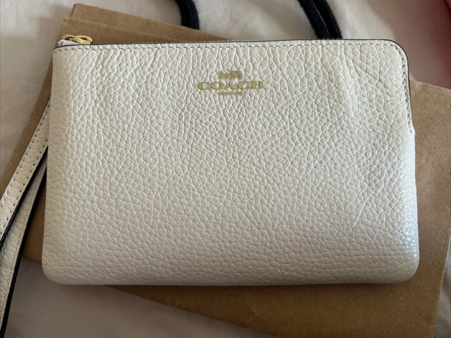 Selling a Coach wristlet in white leather! It's in great condition and comes with the original Coach paper bag. Perfect for carrying your essentials!