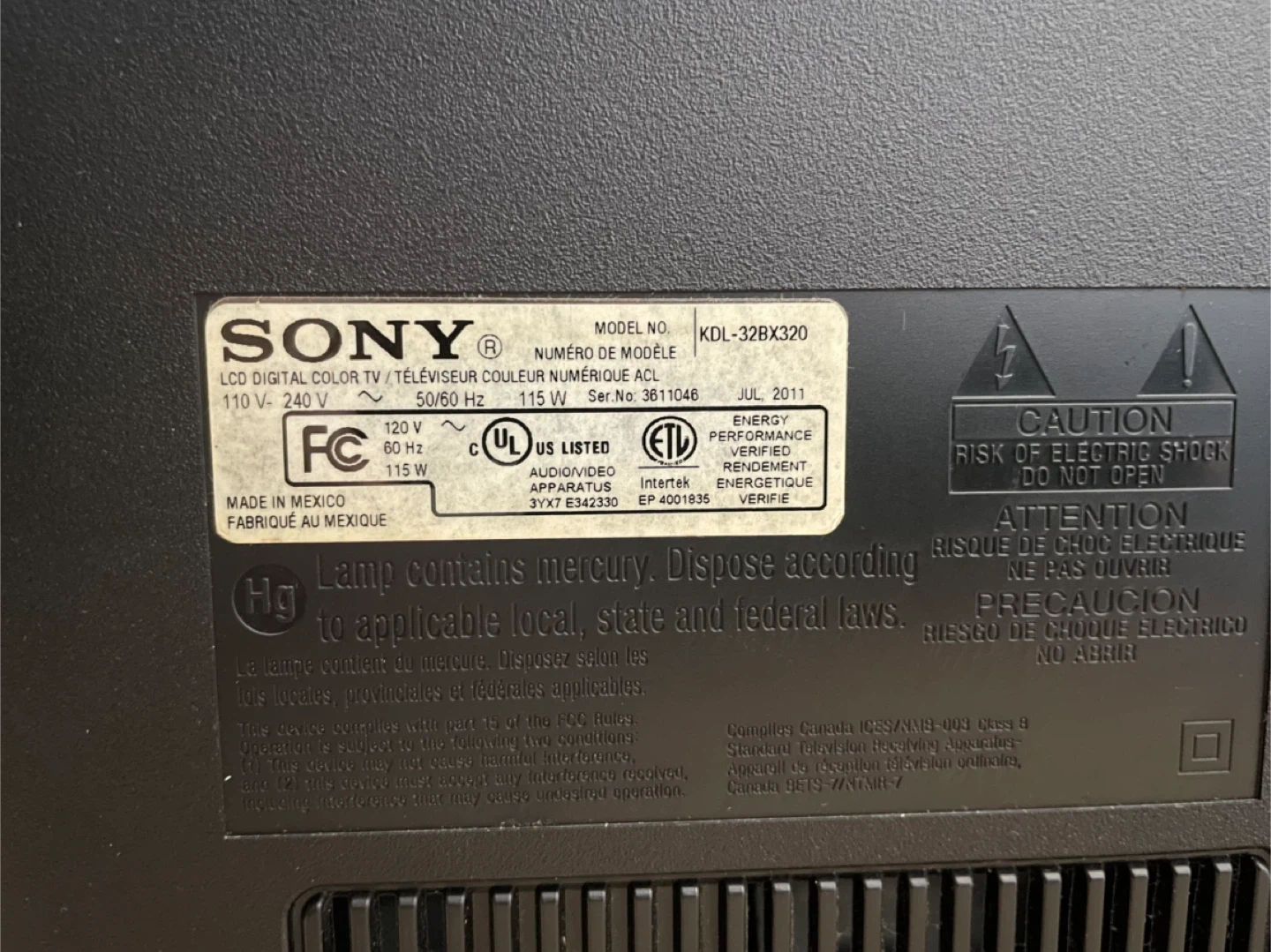 Tv sony 32”” with remote control Not smart Tv Tv Have HDMI input It’s used & working condition TV Cash and pickup Note - corner area small white lines upper and left side , please refer pictures Location- brimley and Lawrence Delivery available if possible only with fee Thank you