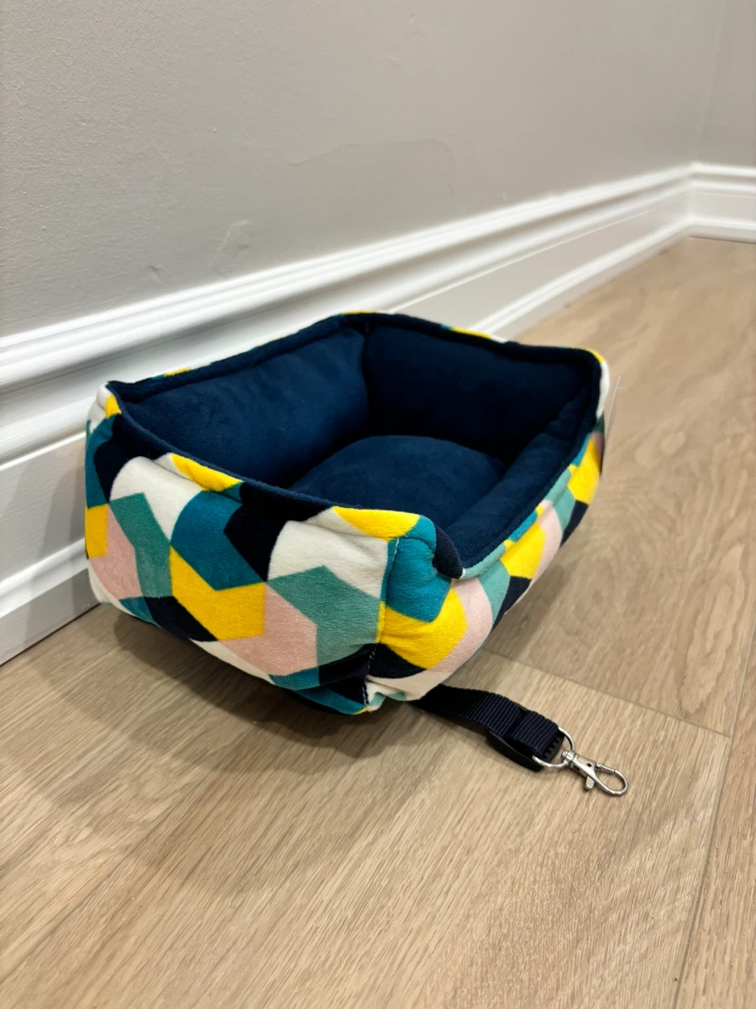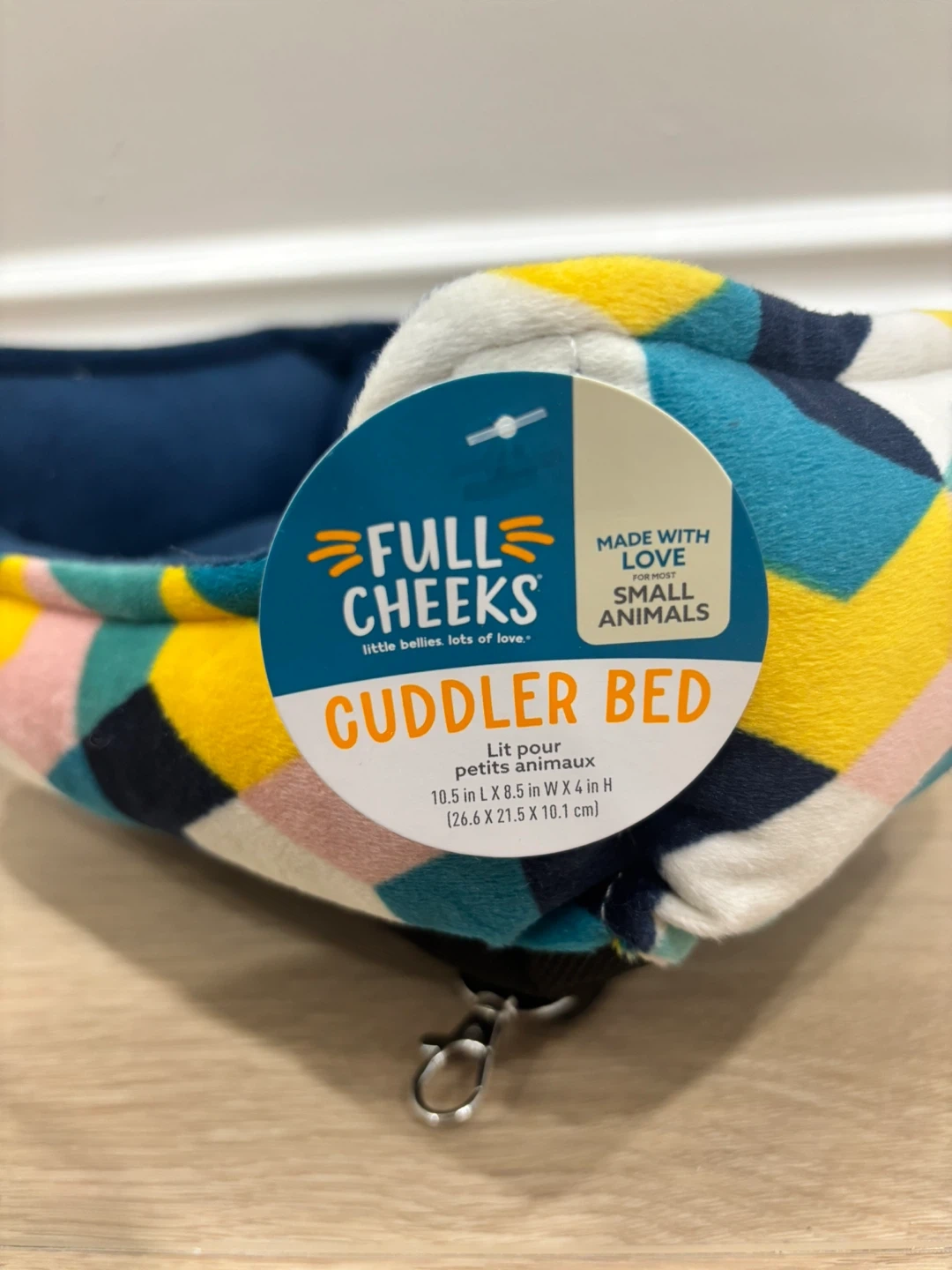 This is a Full Cheeks cuddler bed for small animals. It's made with love and designed for little bellies. Dimensions are 10.5 in L X 8.5 in W X 4 in H.