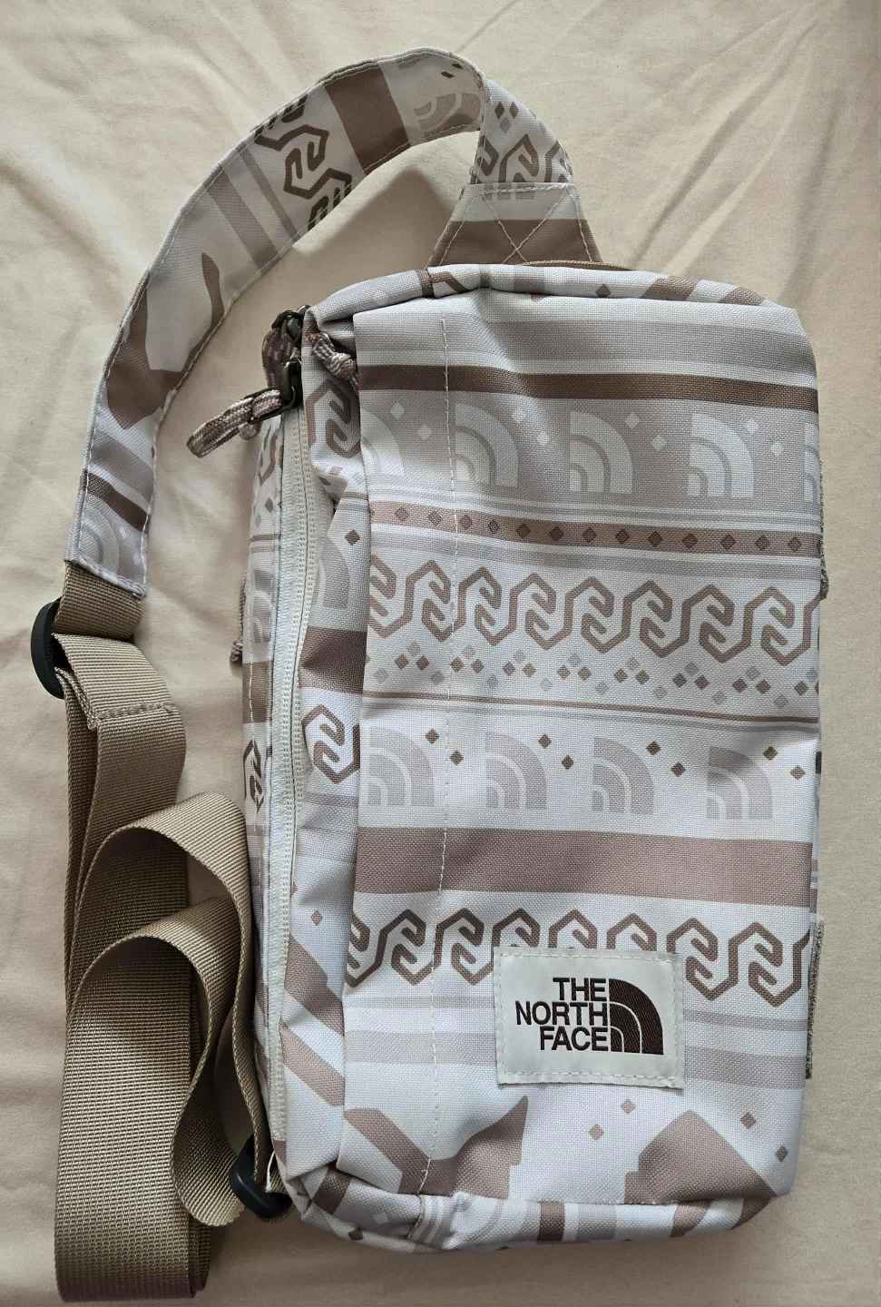 The North Face sling bag with a unique patterned design! It's in great shape and ready for a new home. Perfect for carrying your essentials while keeping your hands free