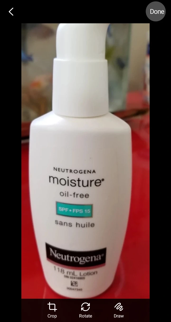 Neutrogena Moisture Oil-Free Lotion with SPF 15! It's a light and effective moisturizer that won't clog pores. It's fragrance-free, alcohol-free, and hypoallergenic. half is used.
