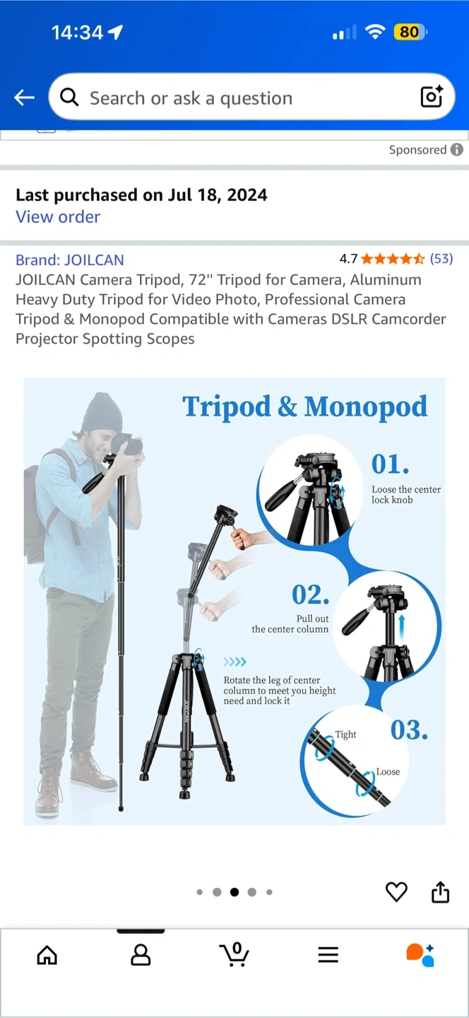 Selling a JOILCAN camera tripod, perfect for video, photo, and professional use! It's an aluminum heavy-duty tripod that extends to 72 inches. Compatible with cameras, DSLR camcorders, projector spotting scopes. It also converts to a monopod!