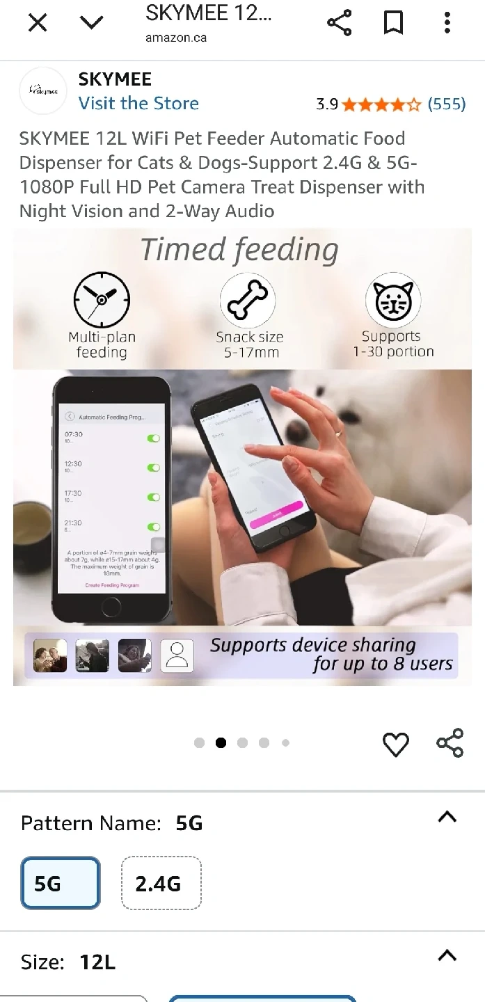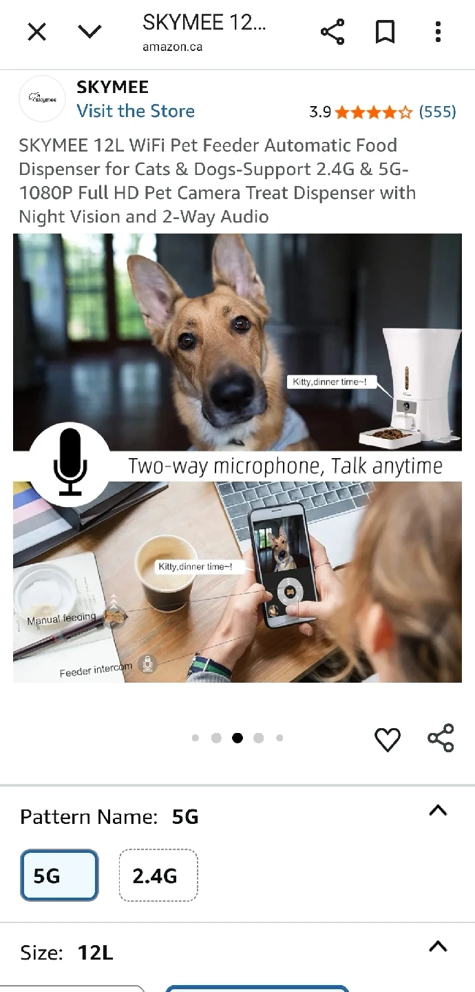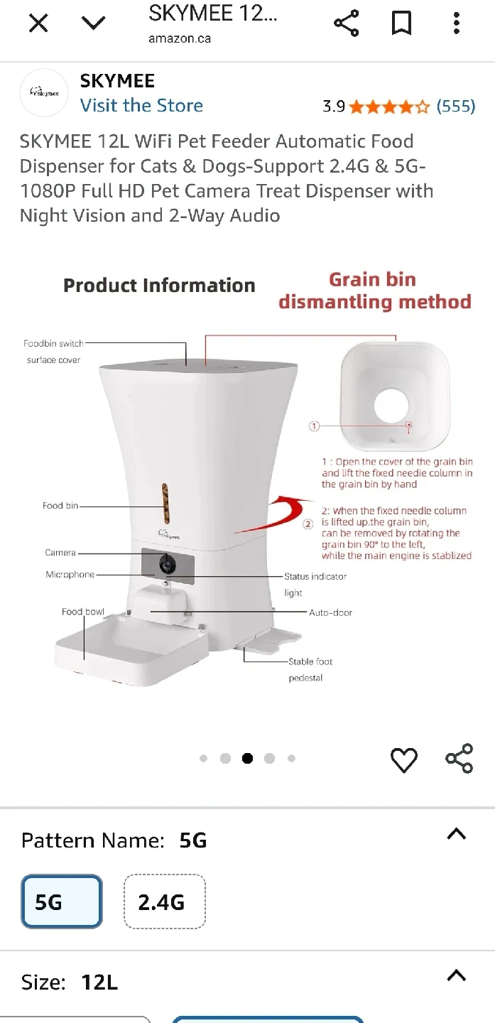 I'm selling a new open box Skymee 12L WiFi pet feeder, an automatic food dispenser perfect for cats and dogs, supporting both 2.4G & 5G networks and featuring a 1080P Full HD pet camera with night vision and 2-way audio. This smart feeder makes pet care convenient and interactive, ensuring your furry friends are fed on time, every time, with the added benefit of monitoring and communication. Key Features: * 12L Capacity: Large capacity suitable for extended periods. * WiFi Enabled: Supports 2.4G & 5G WiFi for reliable connectivity. * 1080P Full HD Camera: Monitor your pet with clear day and night vision. * Two-Way Audio: Communicate with your pet remotely. Tested working. Pickup at Bur Oak @ McCowan Markham, or at 70 Queens Wharf Rd, downtown Toronto around noon most of Sundays