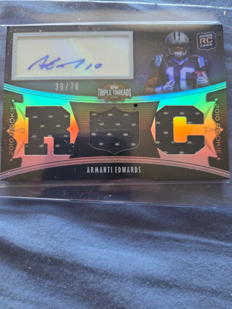 Selling an Armanti Edwards 2010 Rookie Card from Topps Triple Threads. It's numbered 38/70 and features an autograph.