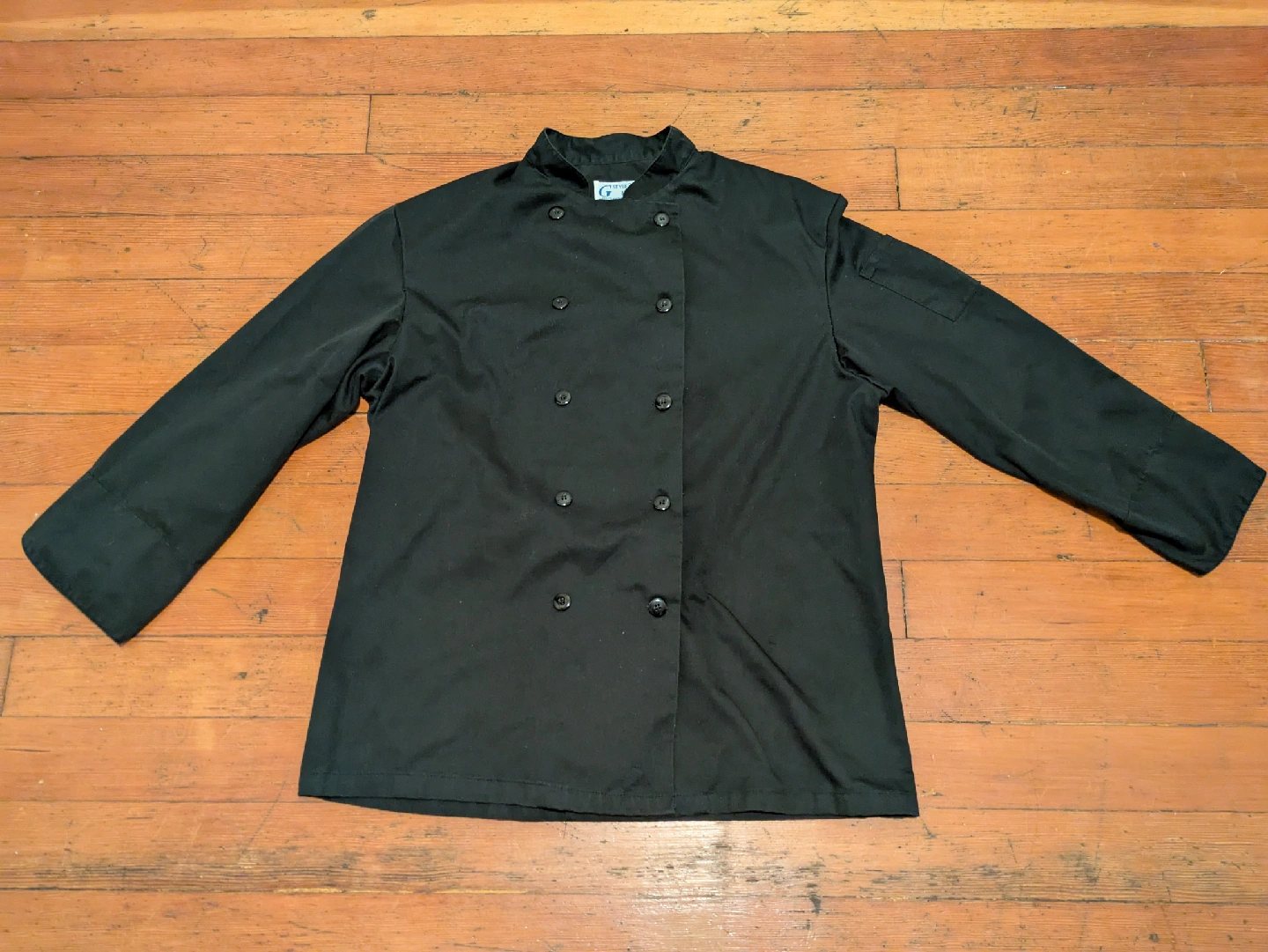 Selling a black chef coat. Double breasted button up. It's in great condition. Perfect for culinary students or professional chefs or costumes.
