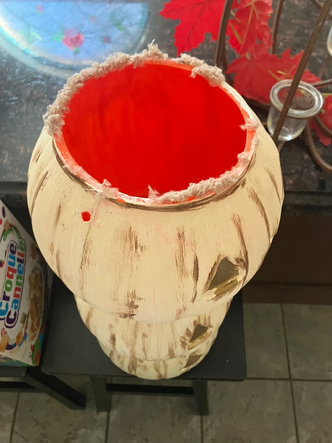 Stack of 3 pumpkins-22”x6”, the top one is open for candy or flowers