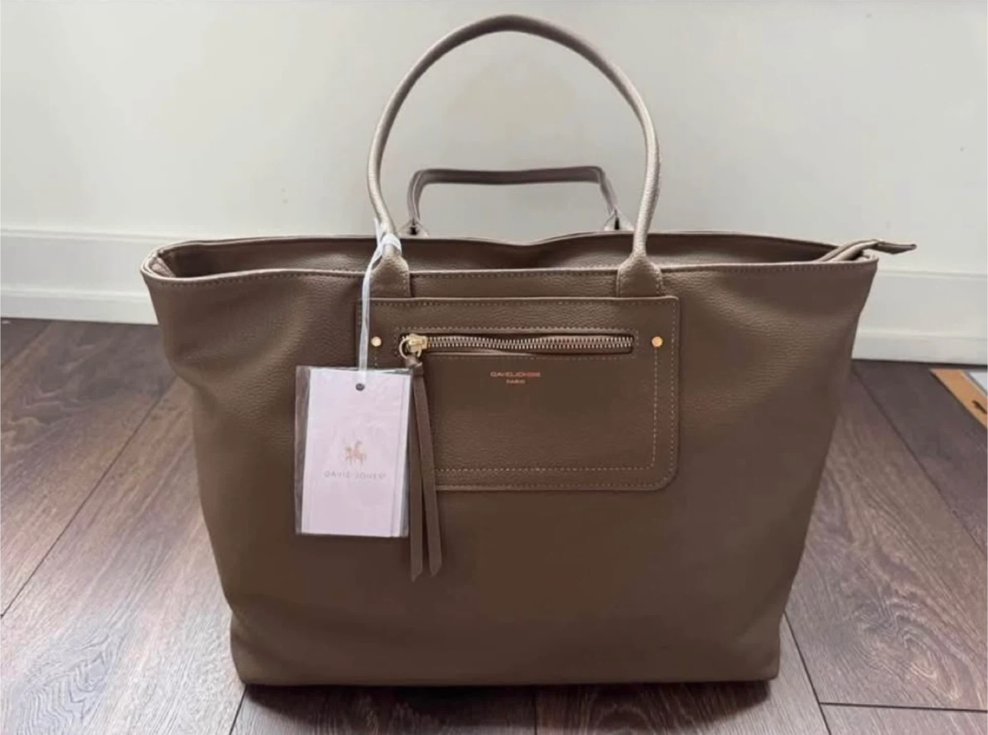 10Here's a brand new David Jones Paris tote bag! It's a beautiful taupe color and still has the tags attached. Perfect for everyday use or as a stylish work bag