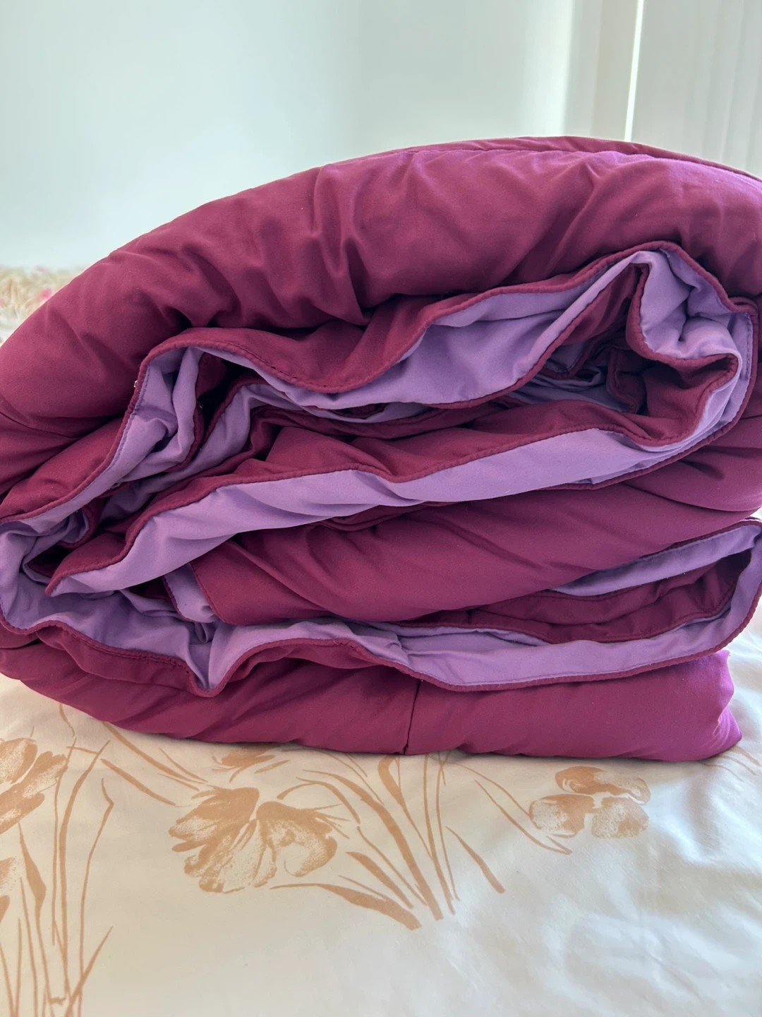 Selling a KIANA 3 piece comforter set in a lovely purple and lavender colour combination. It comes in its original packaging and 2 pillow covers.