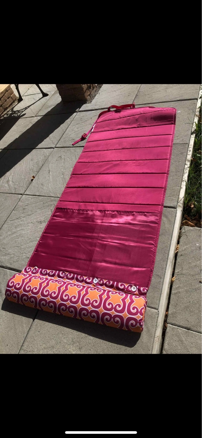Here's a pink makeup brush roll! 12x36 inch approx. It's in great condition and perfect for travel or keeping your brushes organized at home