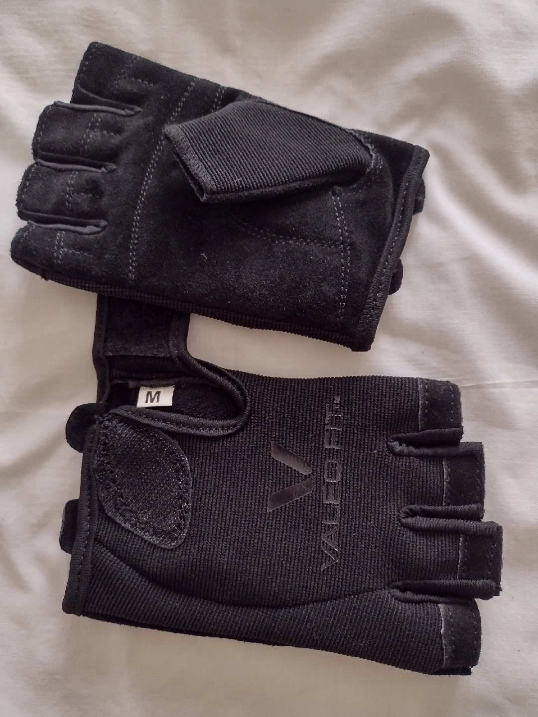 Selling a pair of Valeo Fit weight lifting gloves in size medium! These gloves are great for protecting your hands during workouts. They are black and in new condition, never been used.