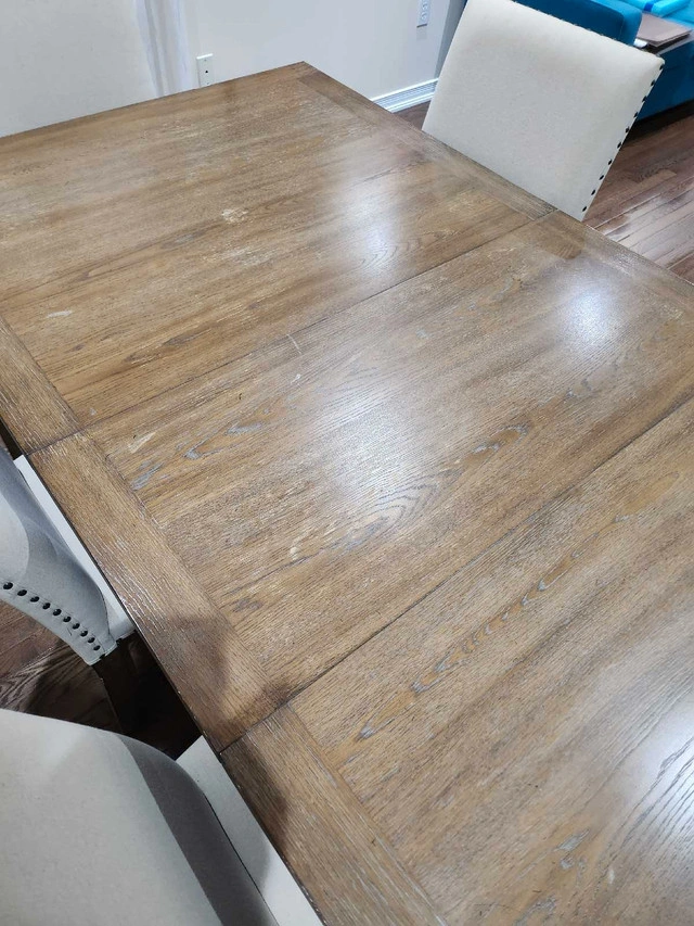 This adjustable wooden dining table is perfect for family gatherings or dinner parties. It comfortably seats six but can expand to accommodate more guests. This table has been used and shows signs of wear, which I've tried to capture in the pictures. * Material: Wood * Shape: Rectangular * Seating Capacity: 6-8 * Features: Adjustable leaf for extending the table length Condition: Used - Like new For Sale By: Owner Curbside pick up: Yes Cash accepted: Yes
