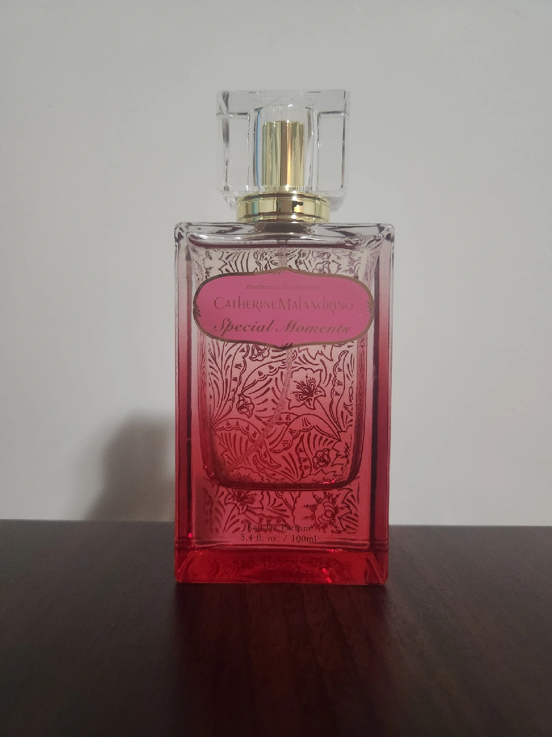 Selling a Catherine Malandrino Special Moments perfume. It's an Eau de Parfum and contains 100ml / 3.4 fl.oz. This fragrance has main accords of fruity, fresh, rose, sweet, powdery, floral, musky, vanilla, aquatic, and ozonic.