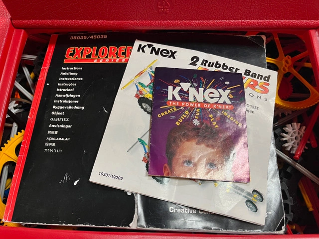10USED KNEX Explorer Series 1 Red Box And Smaller Black Box. Unknown if missing parts. Box seems full. I haven't played with it in two decades. See pictures. FIRM $40. I don't drive; Pickup only. Cash only. No trades.