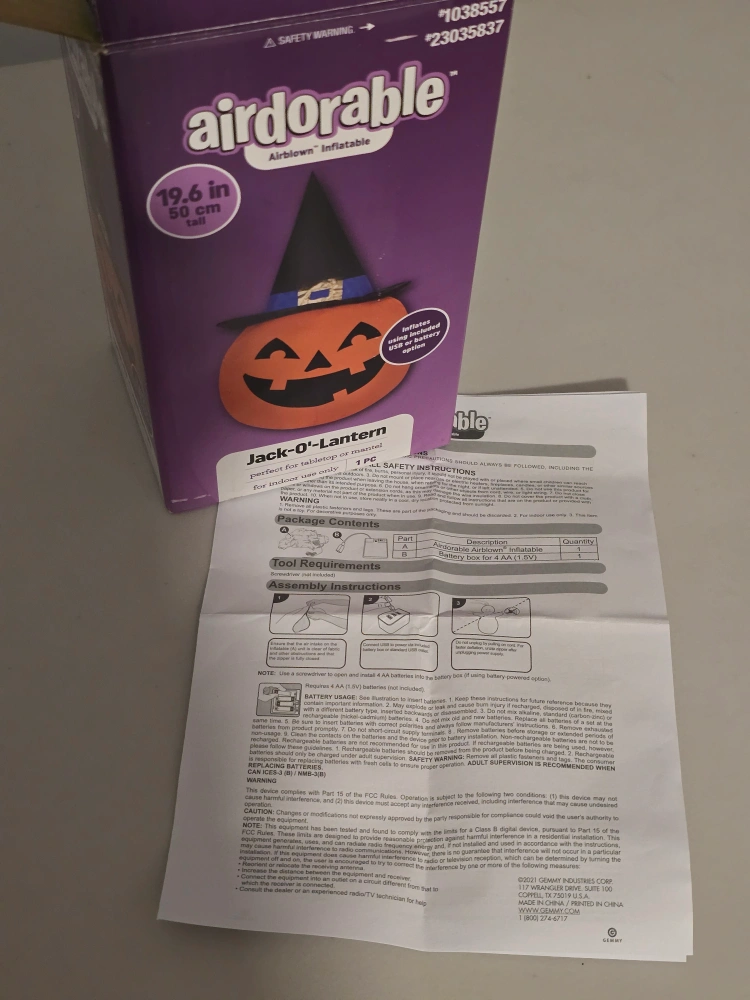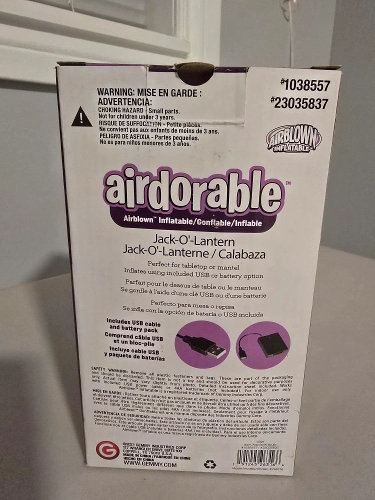 176Pick up in North York Keele St and Wilson Ave area Gently used ▶️ Multi Family Account - Cash only Airdorable Jack-O'-Lantern inflatable 19.6 inches (50 cm) tall Perfect for tabletop or mantel decoration It inflates using the included USB cable or battery option
